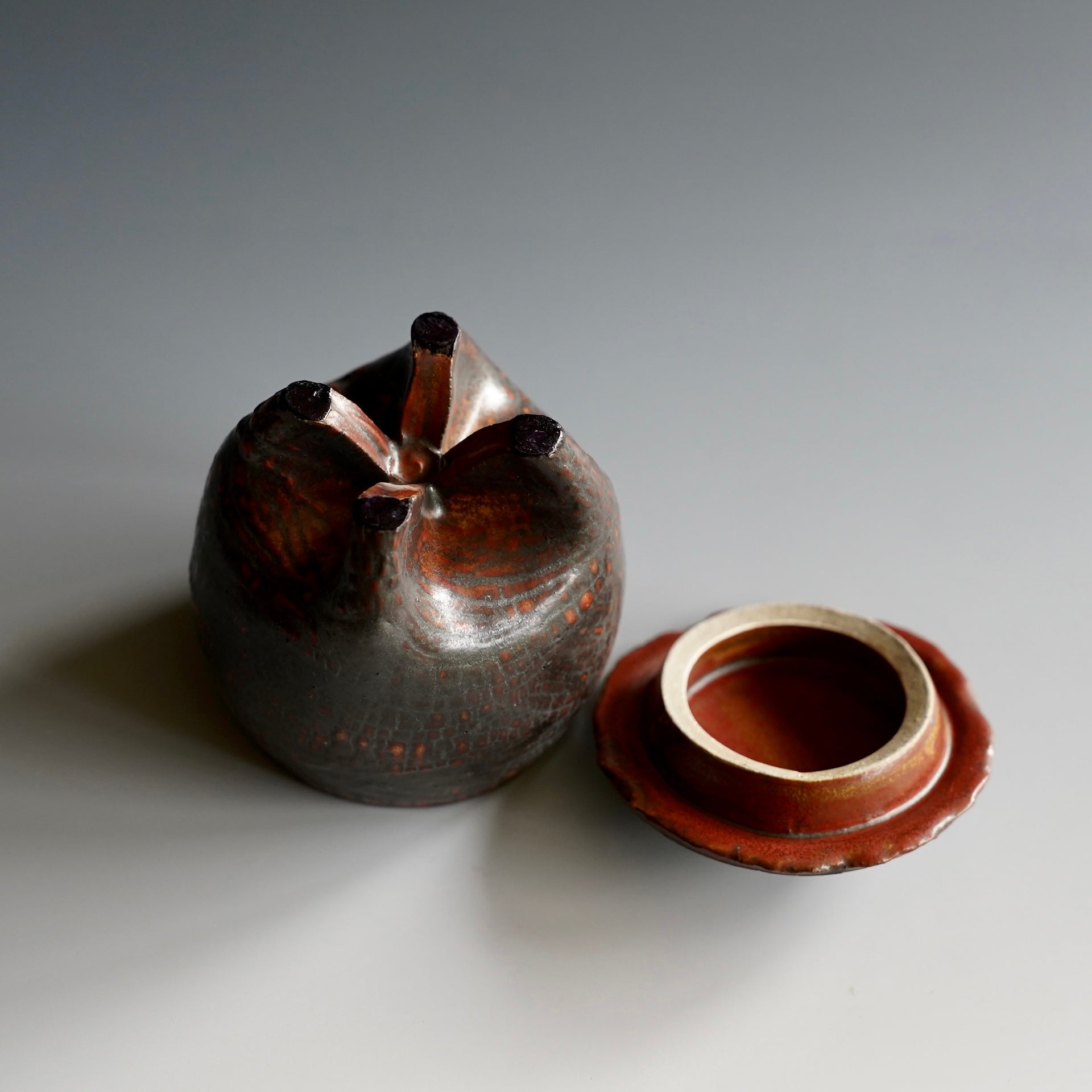 Lidded tea cup - Beni (Red) kohiki, Kaki glaze, liner glaze : kaki, Tanka3 x 3 x 3.75h inches, Holds 6ozDishwasher、Microwave SafeShipping and Policy(rk-76)