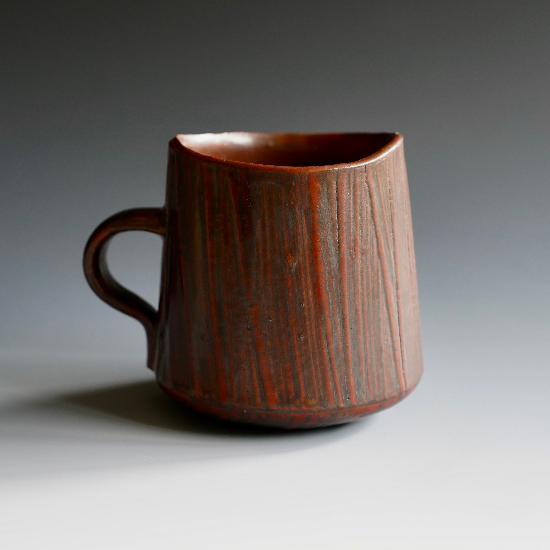 Mug cup -Beni (Red) kohiki, Kaki glaze,   liner glaze : kaki, Tanka