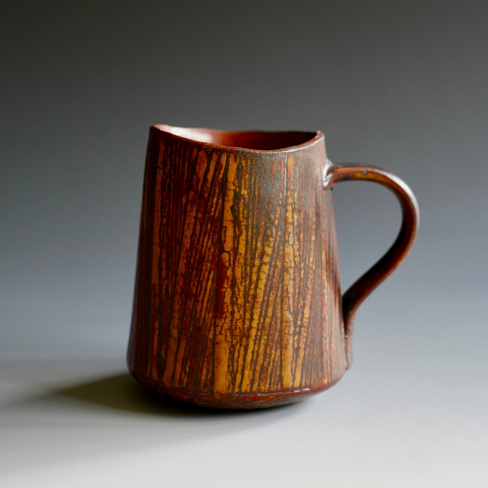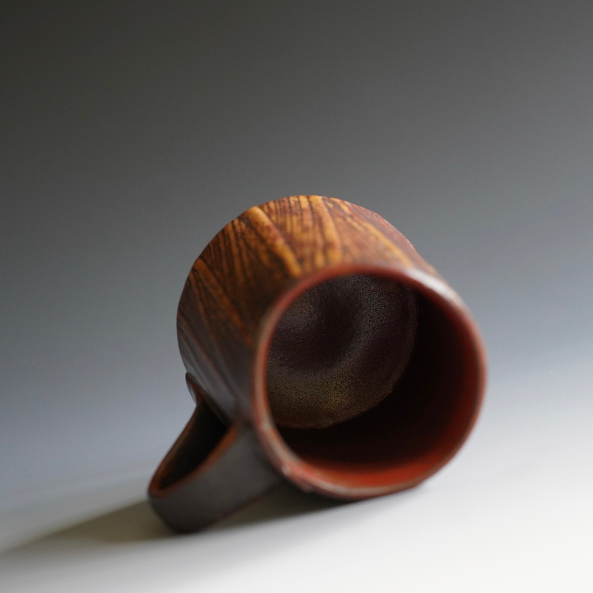 Mug cup - Beni(Red) kohiki, Kaki glaze,   liner glaze : kaki, Tanka