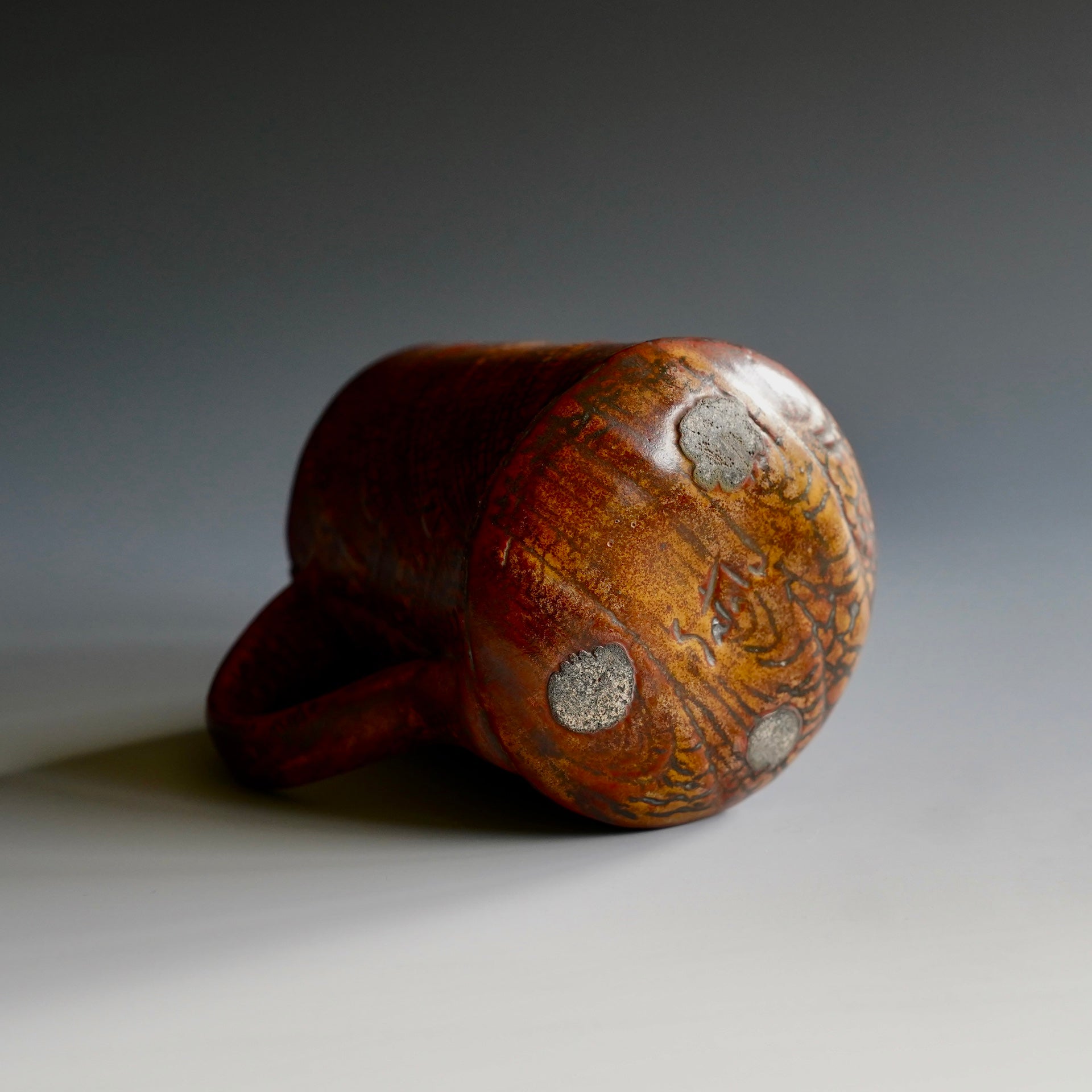 Mug cup - Beni(Red) kohiki, Kaki glaze, liner glaze : kaki, Tankaholds 14 oz to brim, 12oz comfortablyhandle for two fingers