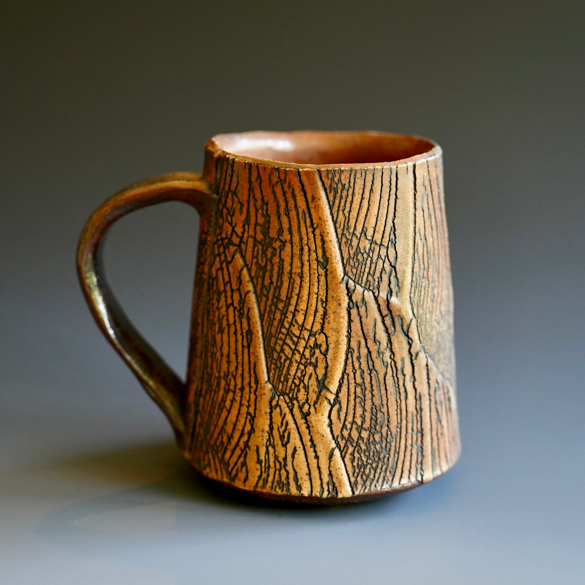 Mug cup - Woodfired4.75 x 3.75 x 4.5 inchesholds 15 oz to brim, 13oz comfortablyhandle for three fingersShipping and Policy(wk-893)