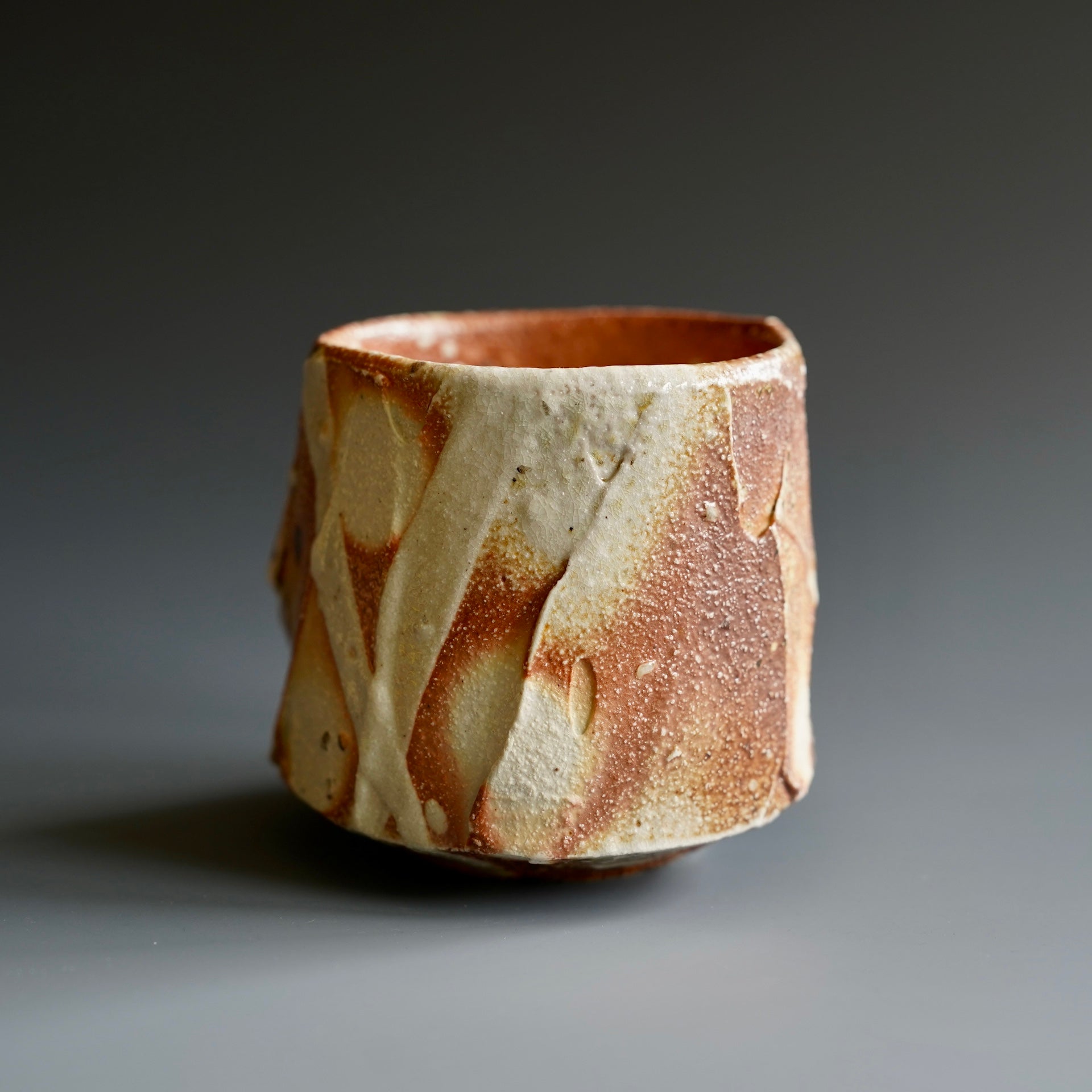 Yunomi (tea cup) - Natural wood ash, Woodfired, shino glazeNatural wood ash: pottery surface is left unglazed and takes on color and markings during the firing from the melted wood ash