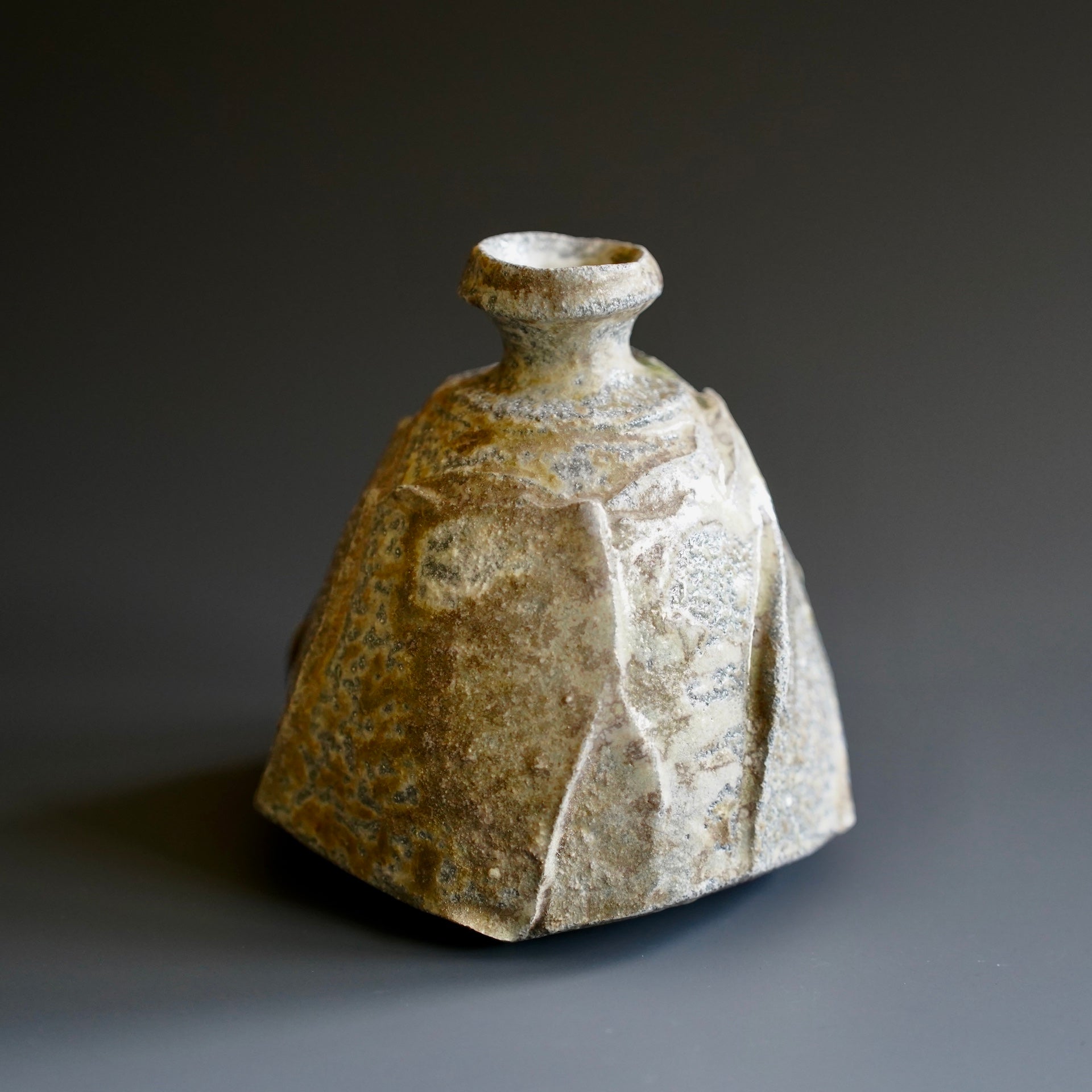 Tokkuri (sake server) - Natural wood ash, Woodfired, Natural wood ash: pottery surface is left unglazed and takes on color and markings during the firing from the melted wood ash4w x 4d x 4.5h inches, Holds 10ozShipping and Policy(t-203)