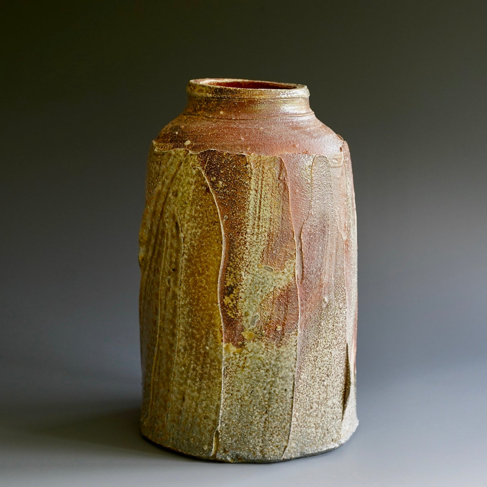 Vase/ Sculpture- Natural wood ash, WoodfiredNatural wood ash: pottery surface is left unglazed and takes on color and markings during the firing from the melted wood ash6 x 6 x 9.5h incheswaterproofed