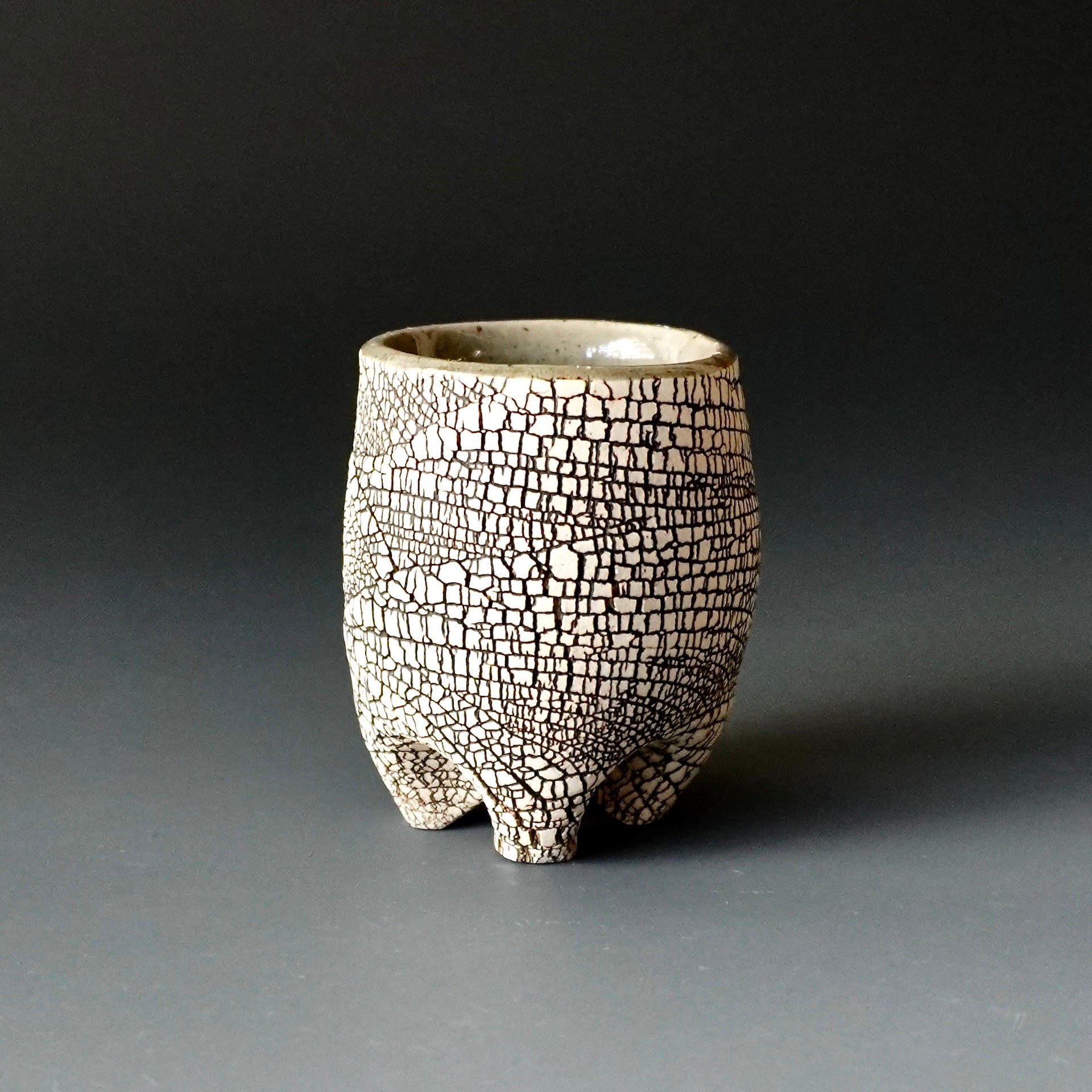 Sake cup - kohiki (white slip), liner glaze : celadon2 x 2 x 2.25 inches, holds 1.8 oz