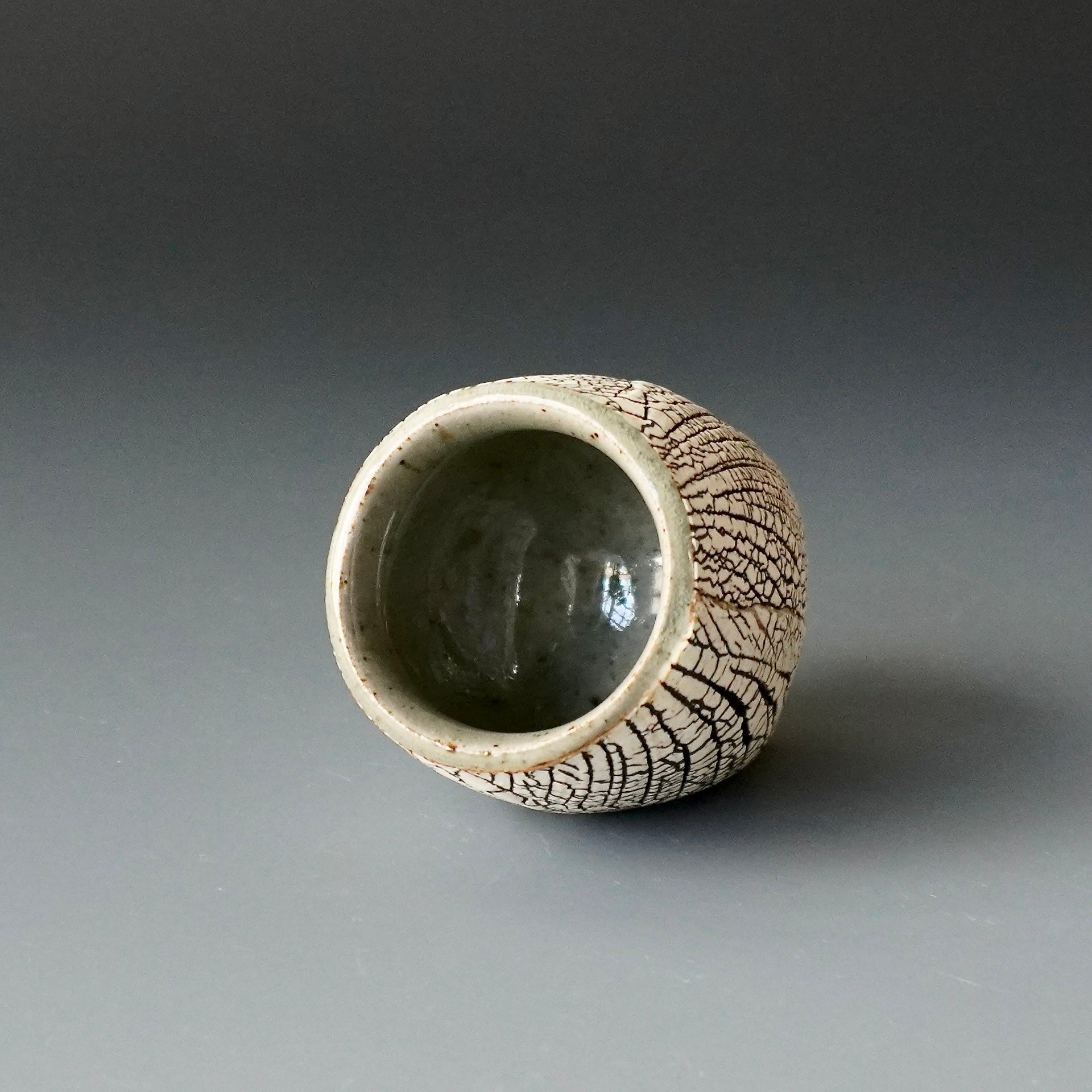 Sake cup - kohiki (white slip), liner glaze : celadon2 x 2 x 2.25 inches, holds 1.8 oz