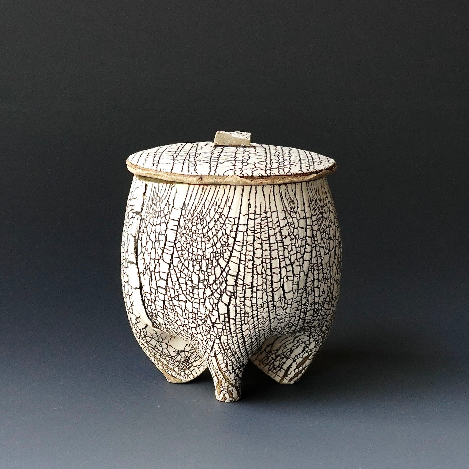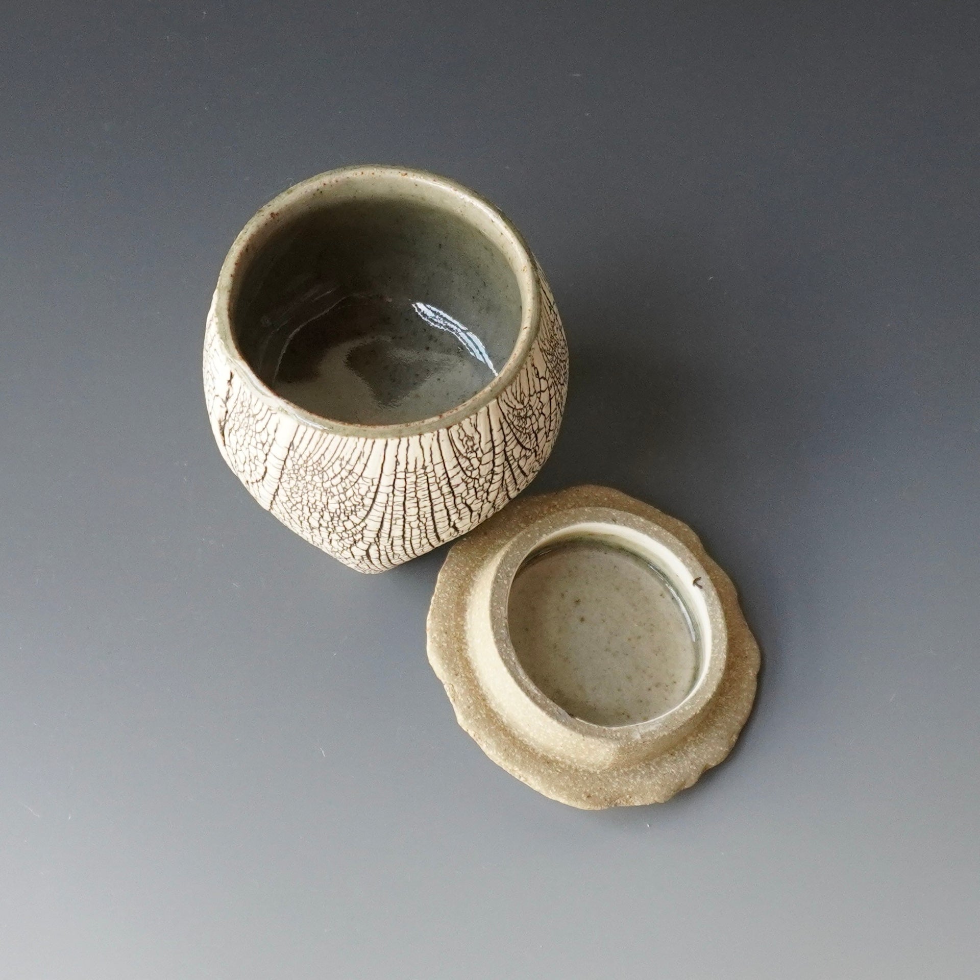 Lidded tea cup- kohiki (white slip), liner glaze : celadon3 x 3 x 3.75h inches, Holds 6ozShipping and Policy(k-7414)