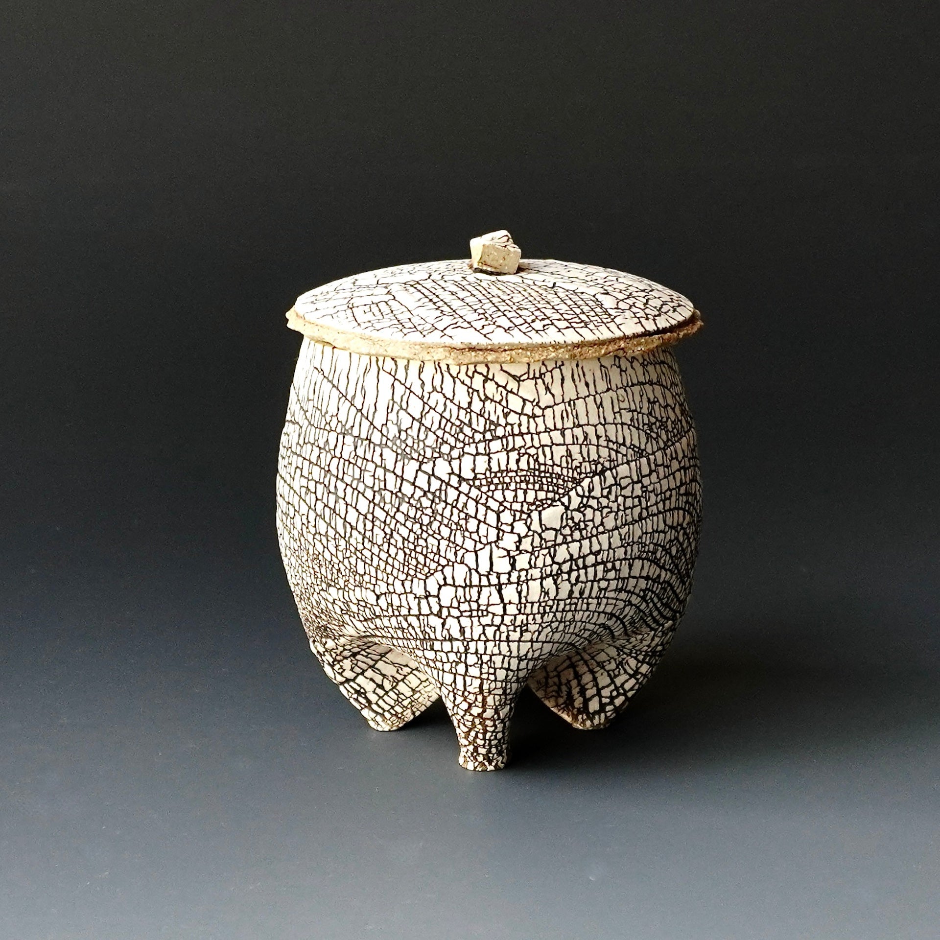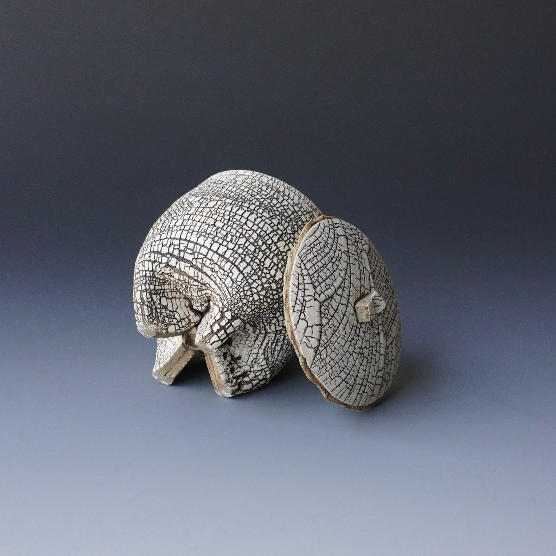 Lidded tea cup- kohiki (white slip), liner glaze : celadon