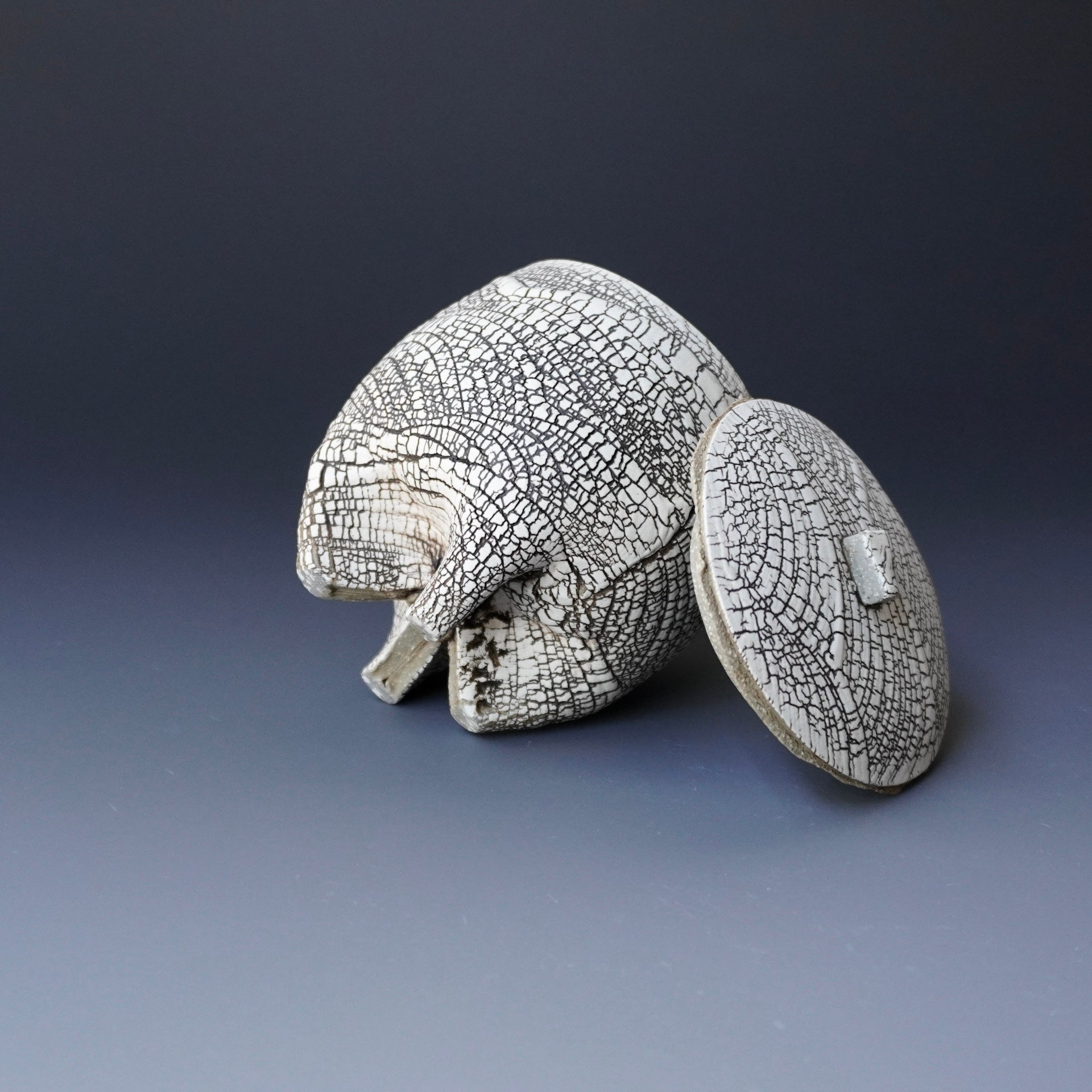 Lidded tea cup- kohiki (white slip), liner glaze : celadon3 x 3 x 3.75h inches, Holds 6ozShipping and Policy(k-7546)