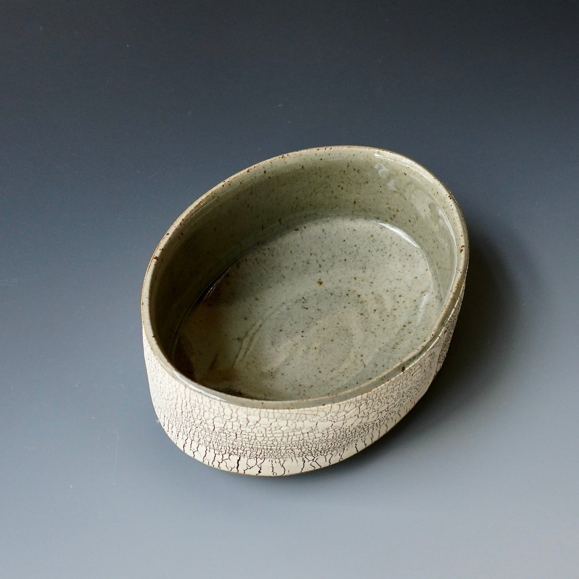 Oval Bowl - kohiki (white slip), liner glaze :celadon6.5 x 5 x 2.5h inches