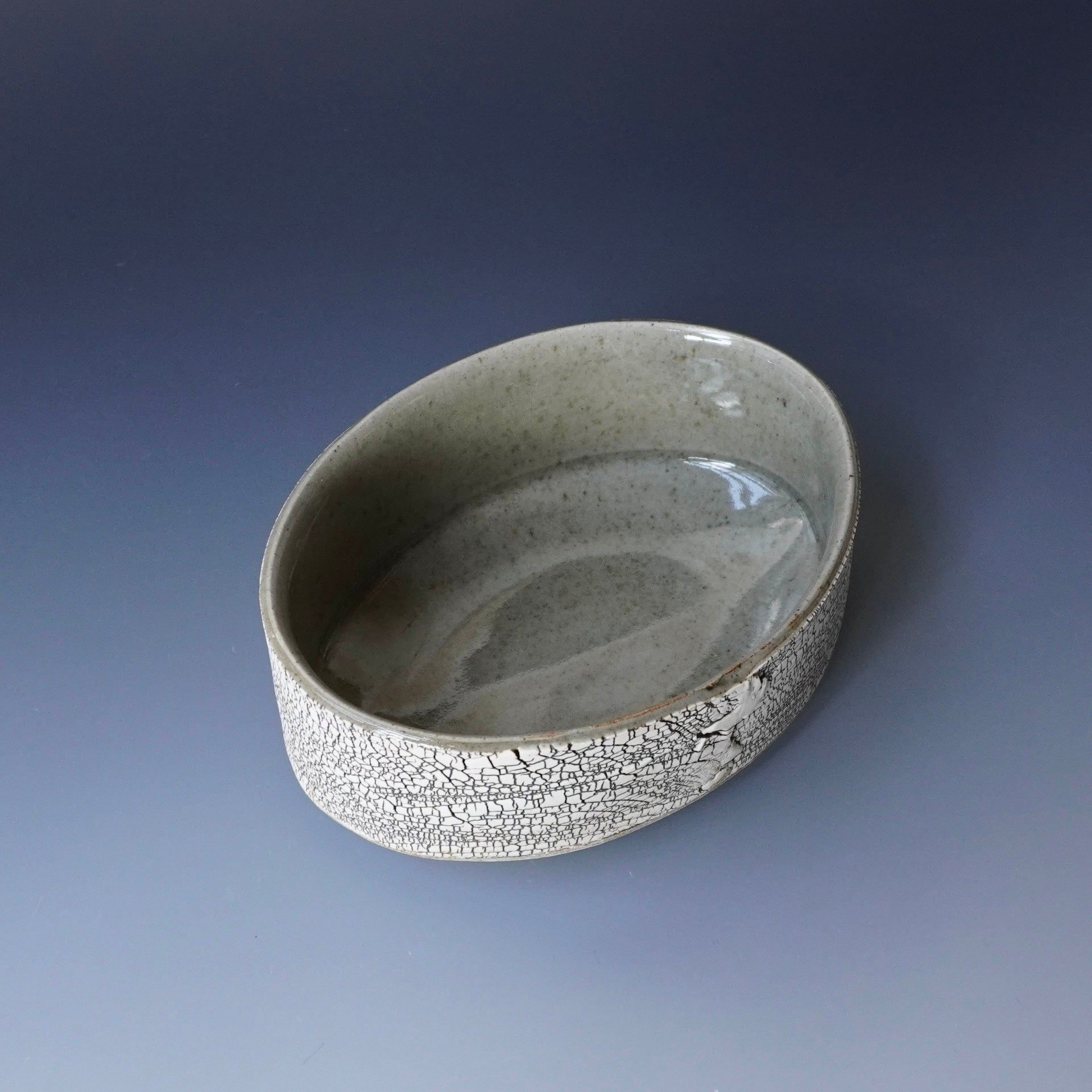 Oval Bowl - kohiki (white slip), liner glaze :celadon6.5 x 5 x 2.5h inches