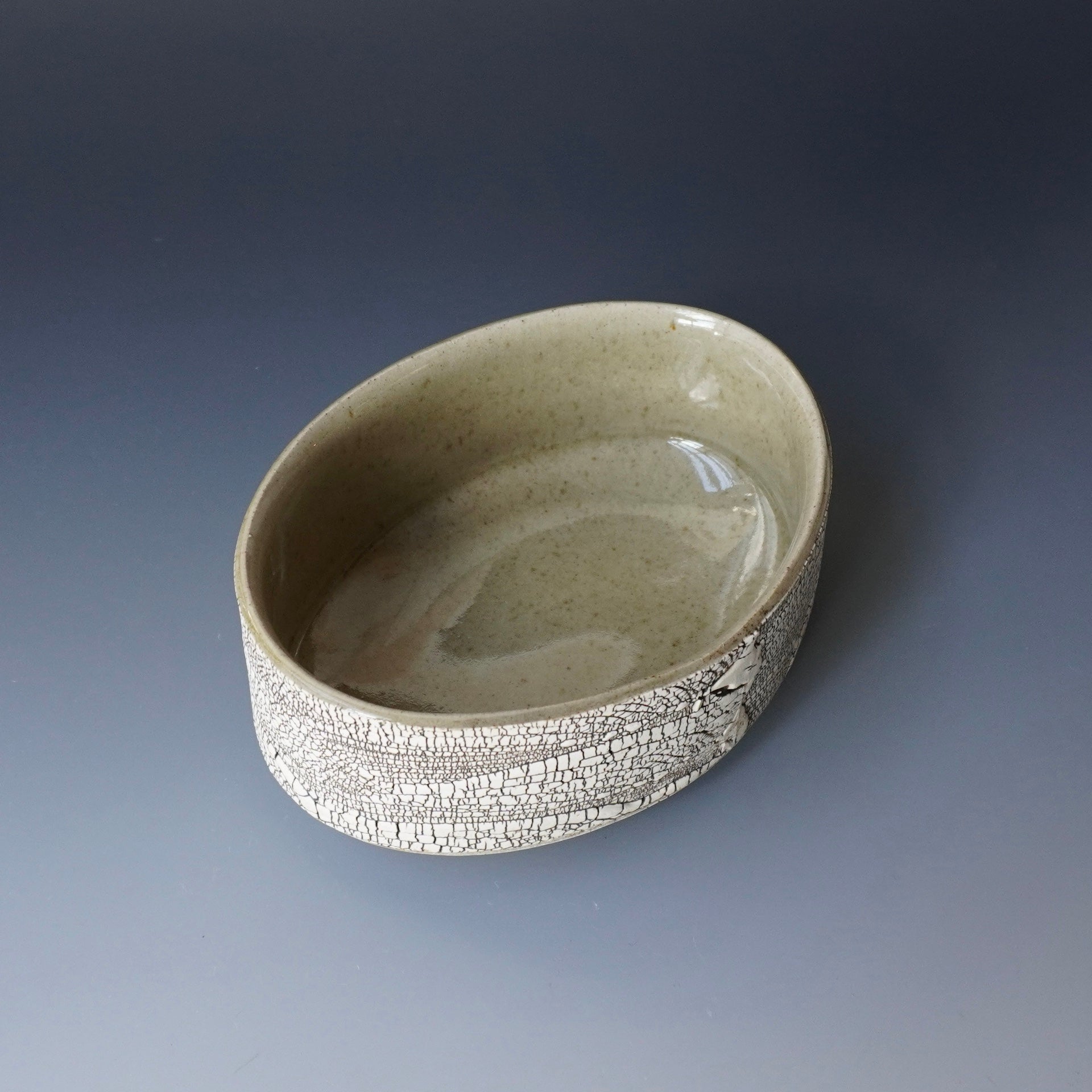 Oval Bowl - kohiki (white slip), liner glaze :celadon6.5 x 5 x 2.5h inches