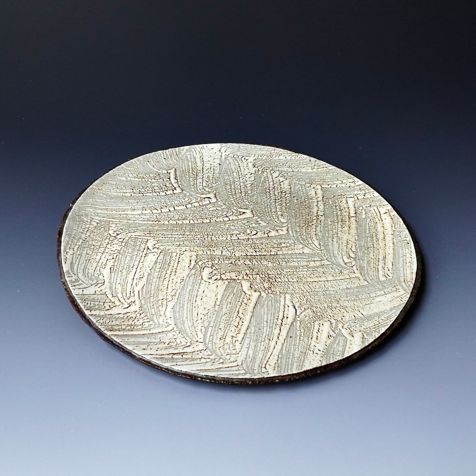 Round Plate - kohiki (white slip), glaze : clear10.5 x 10.5x 0.5h inches