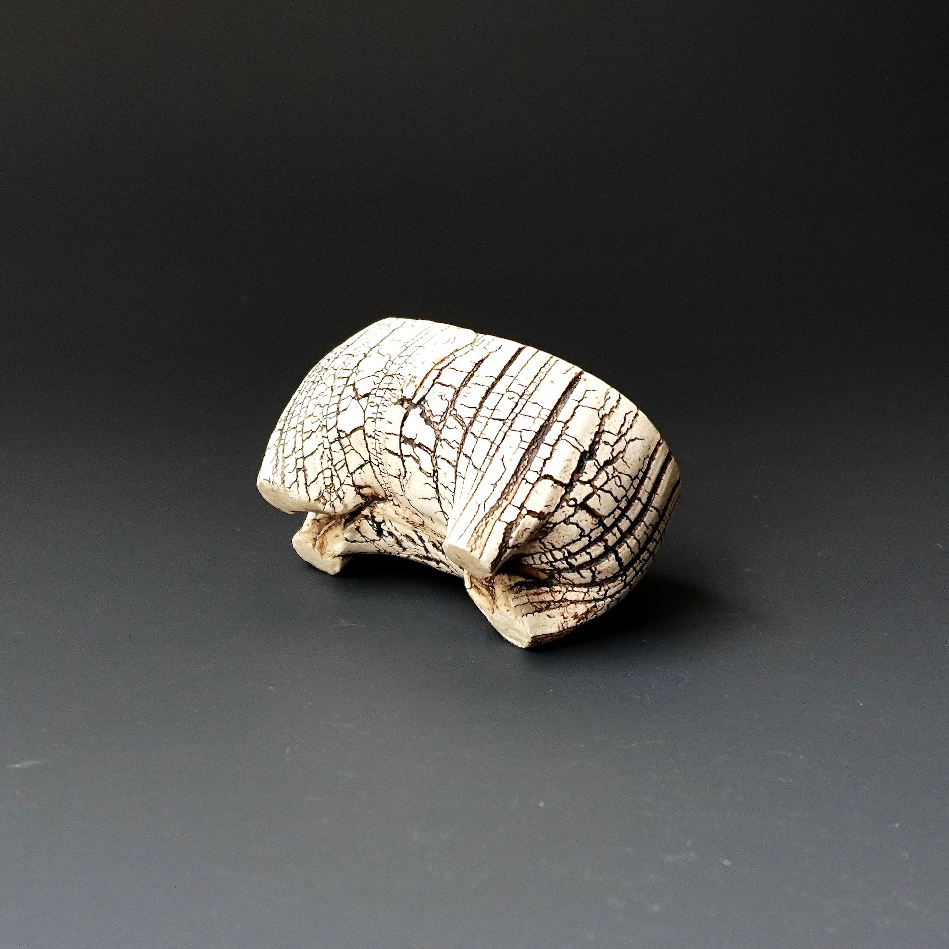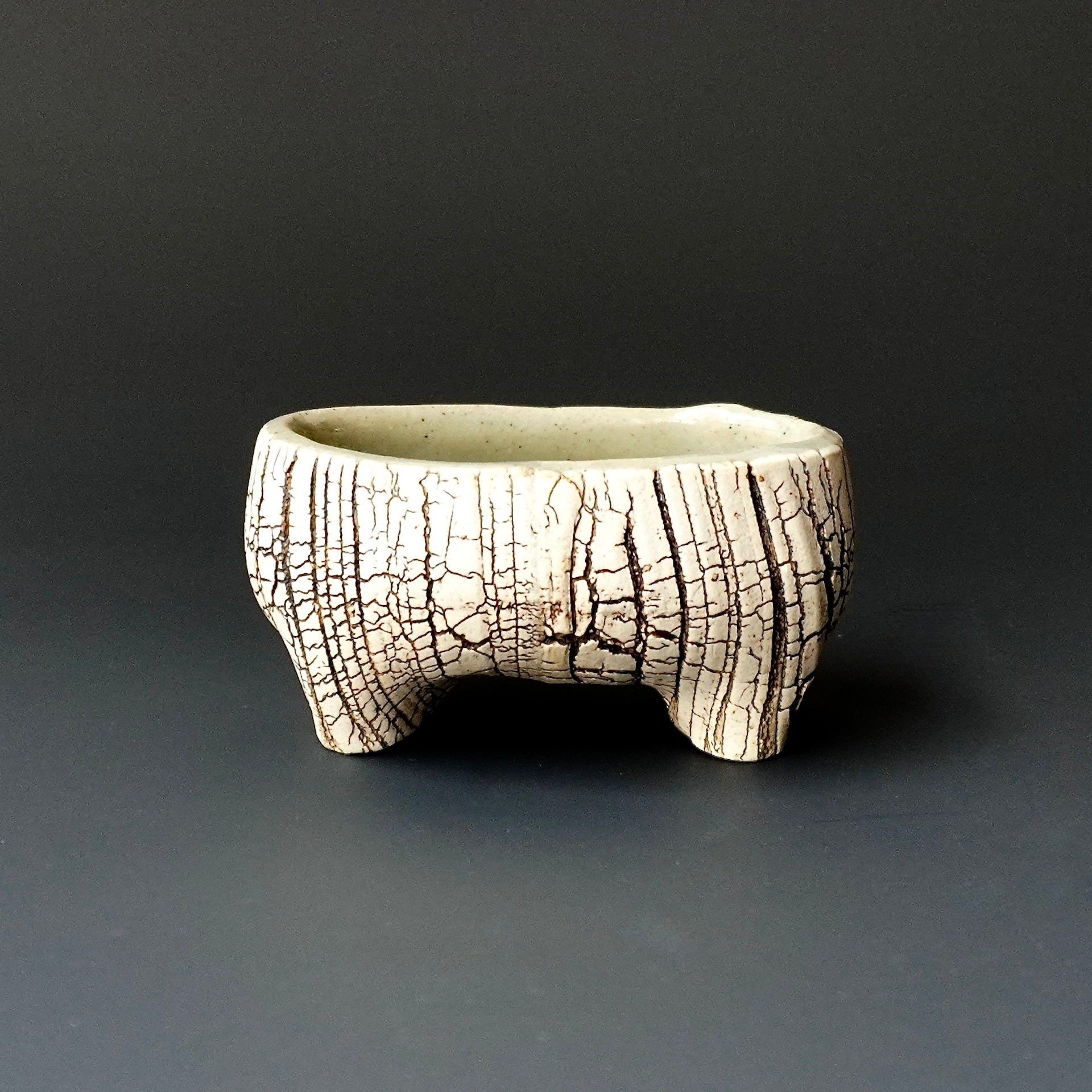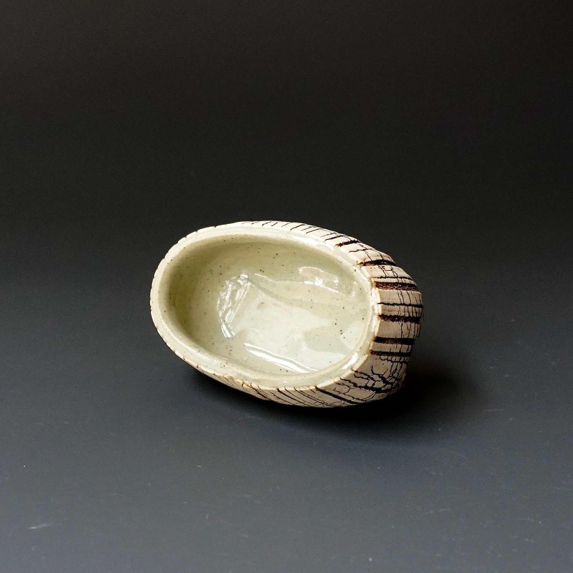 small salt cellar - kohiki (white slip), liner glaze : celadon2.75 x 1.5 x 1.25h inches