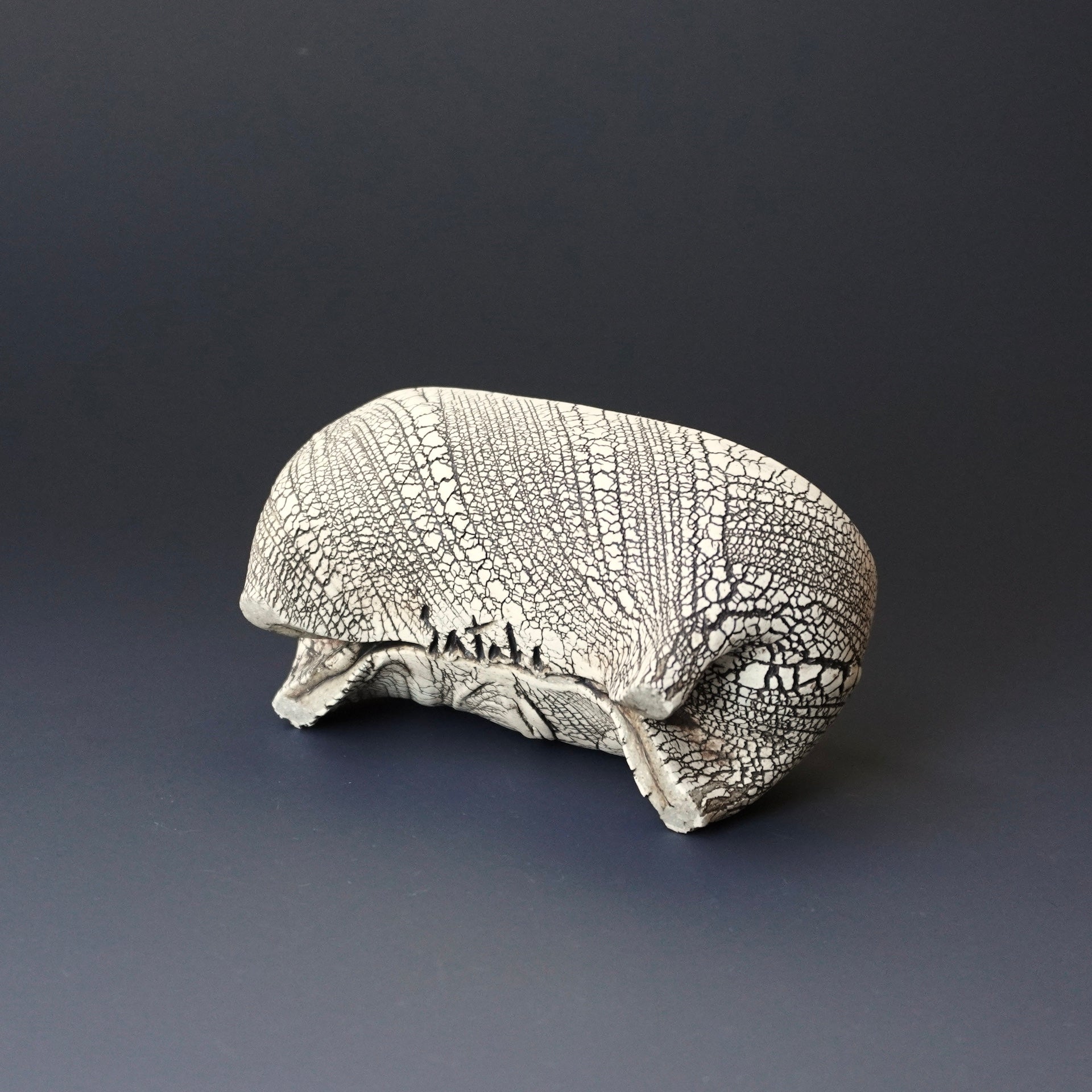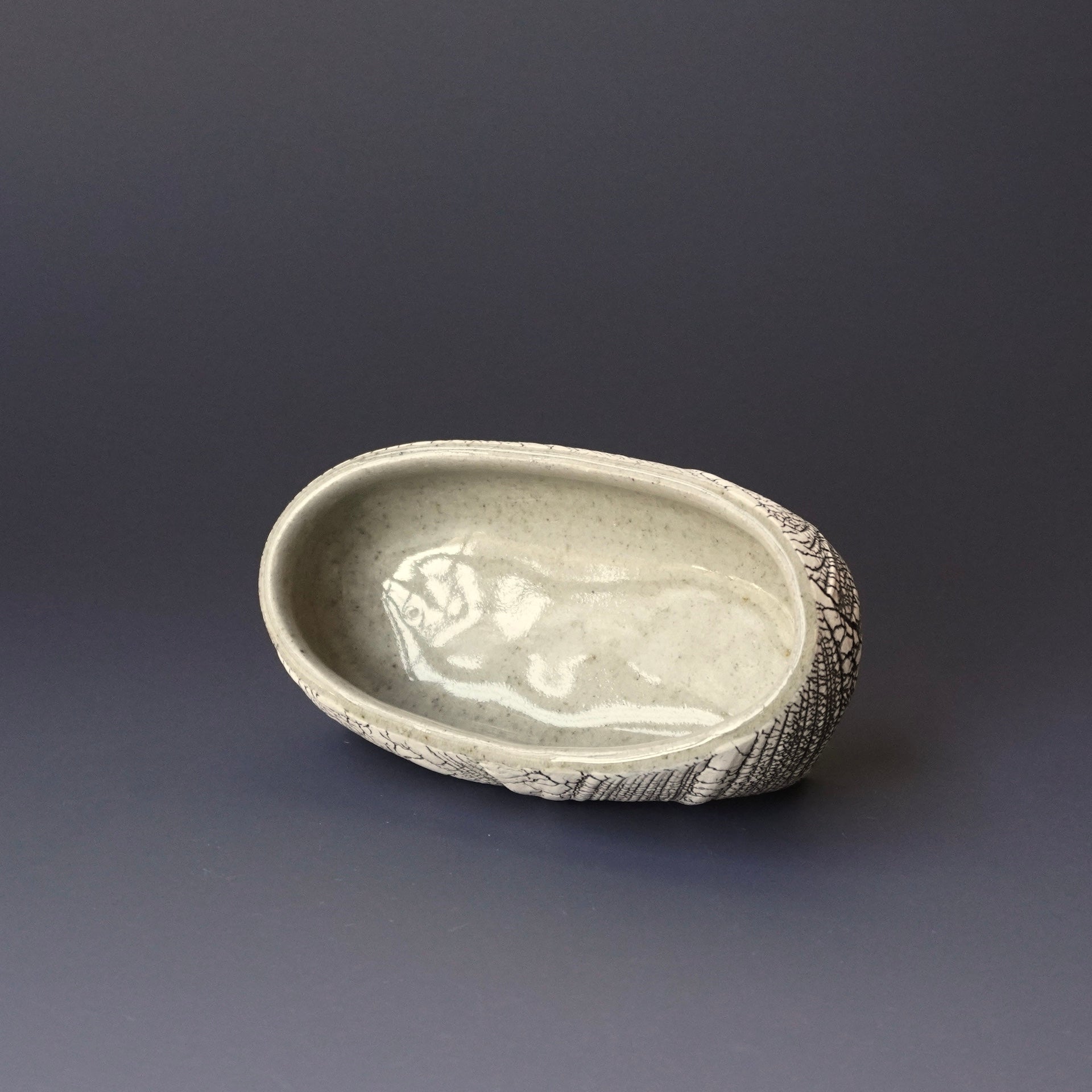 business card holder - kohiki (white slip), liner glaze : Tenmoku