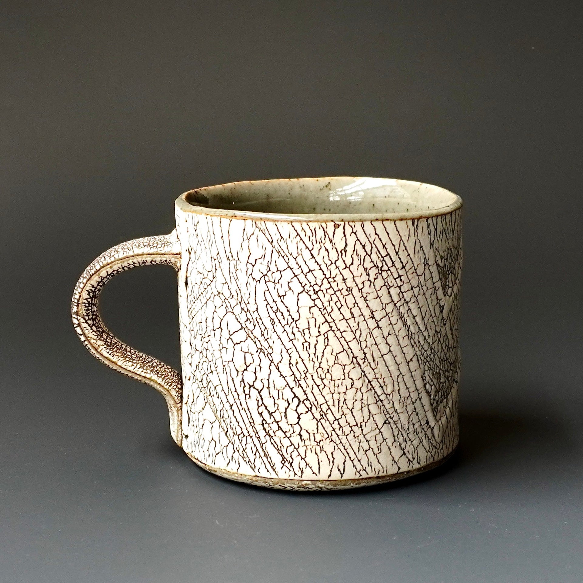 Mug cup -kohiki, liner glaze : celadon4.5 x 3.25 x 2.75 inches, holds 7 oz