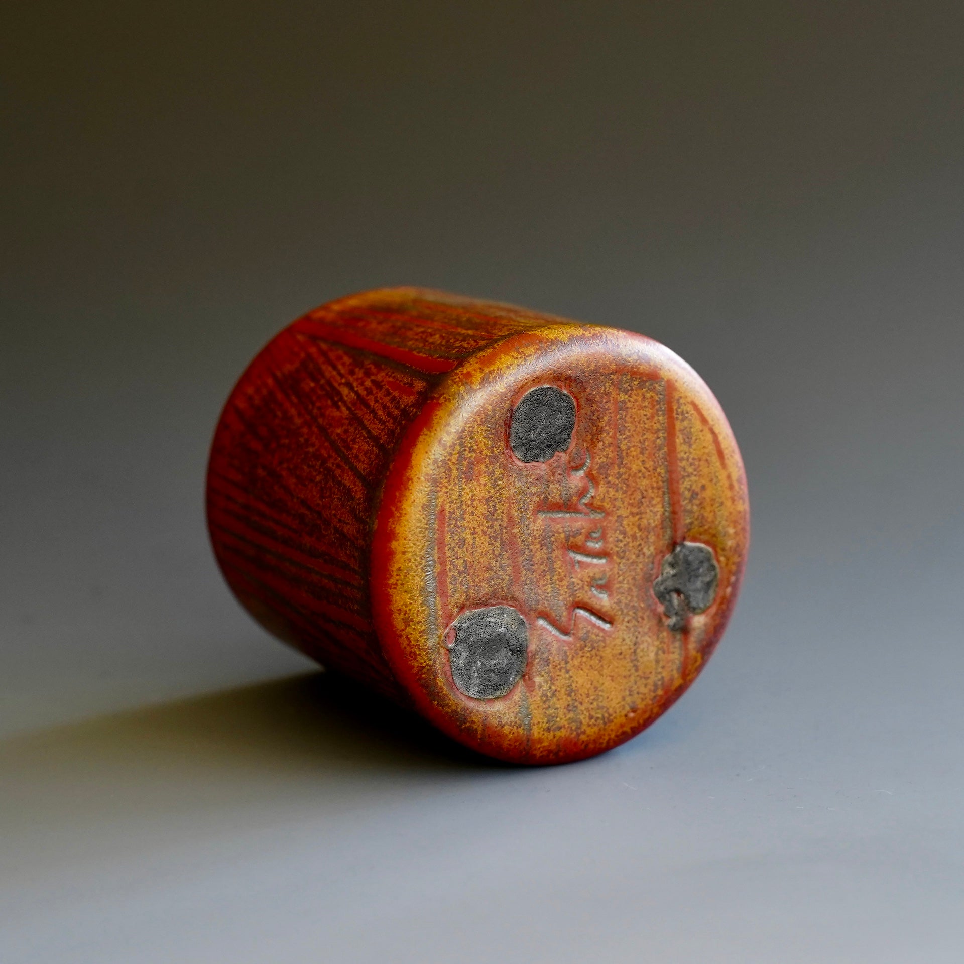 Cup -Beni (Red) kohiki, Kaki glaze, Tanka3.125 x 3.125 x 3 inchesHolds 8 oz to brim, 6 oz comfortably