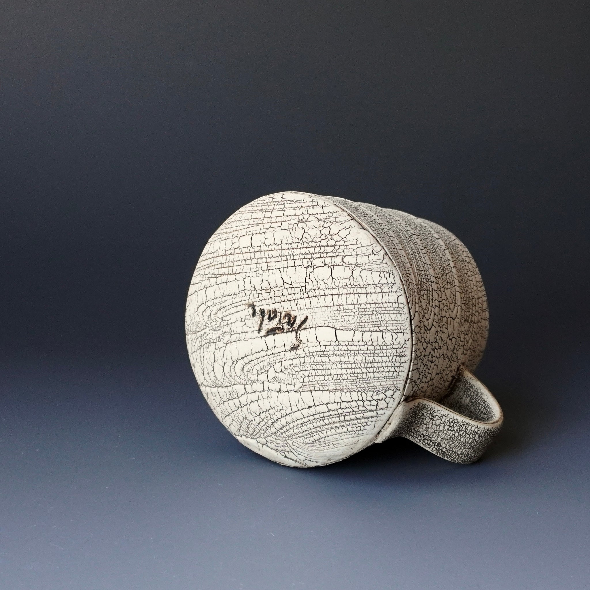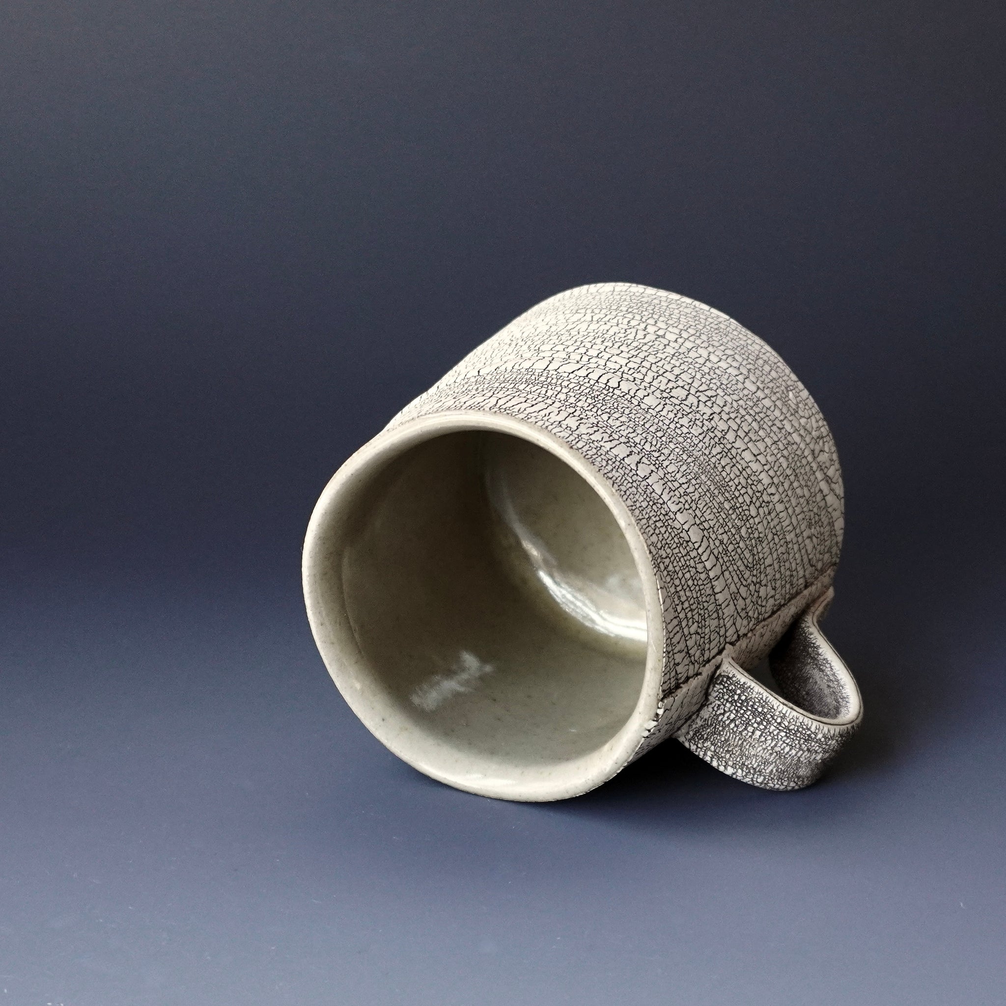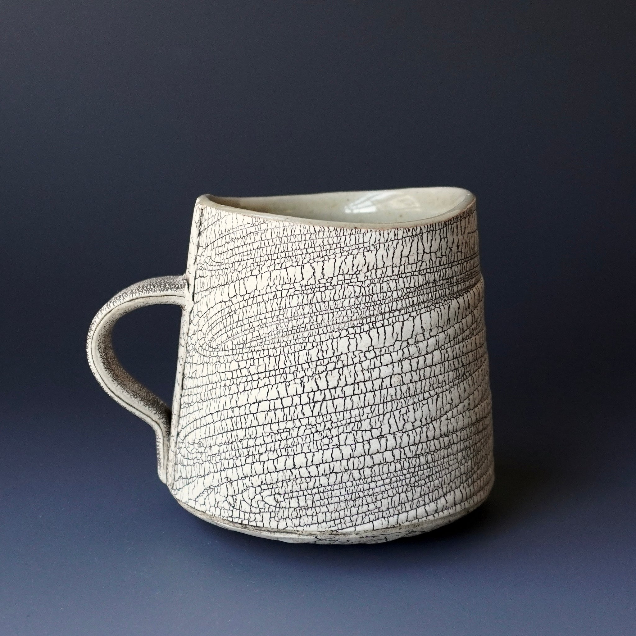 Mug cup - kohiki (white slip), liner glaze : celadon5 x 4 x 3.75h inchesholds 16 oz to the brim, 12.5oz comfortablyhandle for one finger