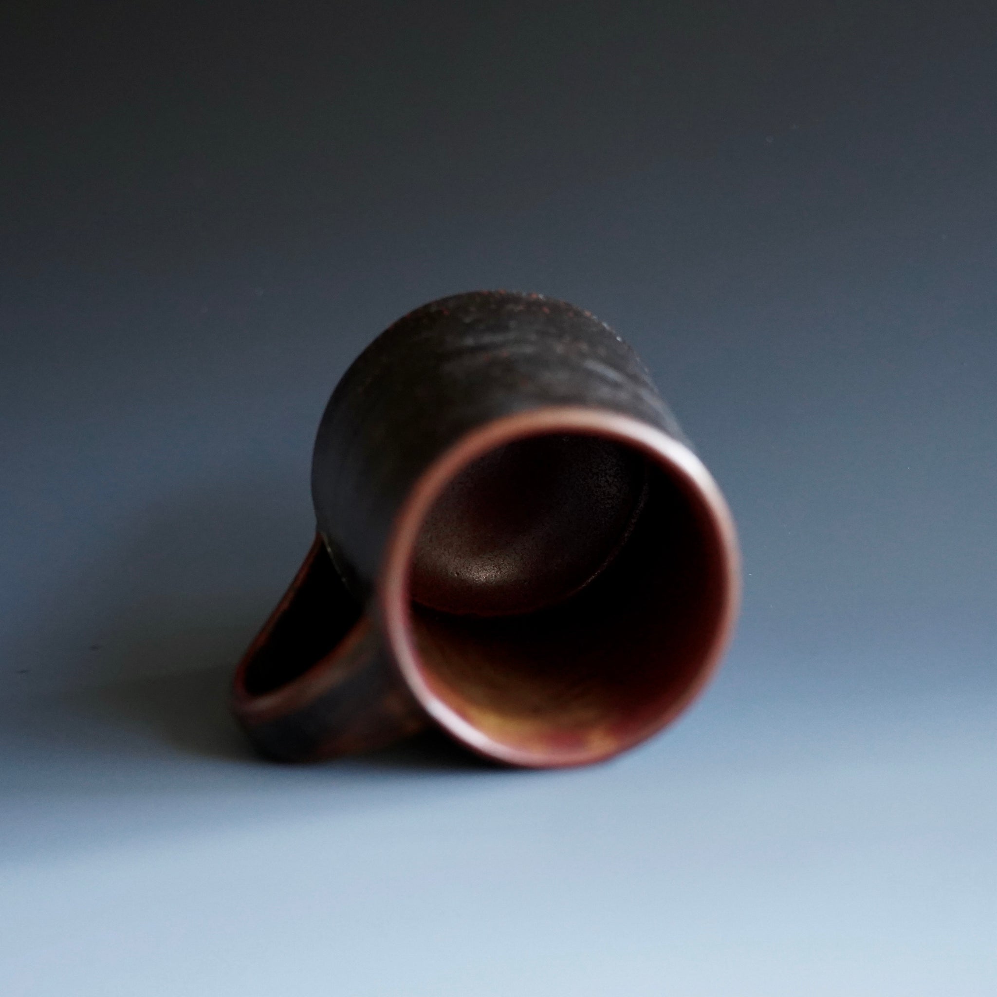 Mug cup -Beni (Red) kohiki, Kaki glaze, liner glaze : kaki, Tanka4.75 x 3.75 x 4.5 inchesholds 15 oz to brim, 13oz comfortablyhandle for three fingers