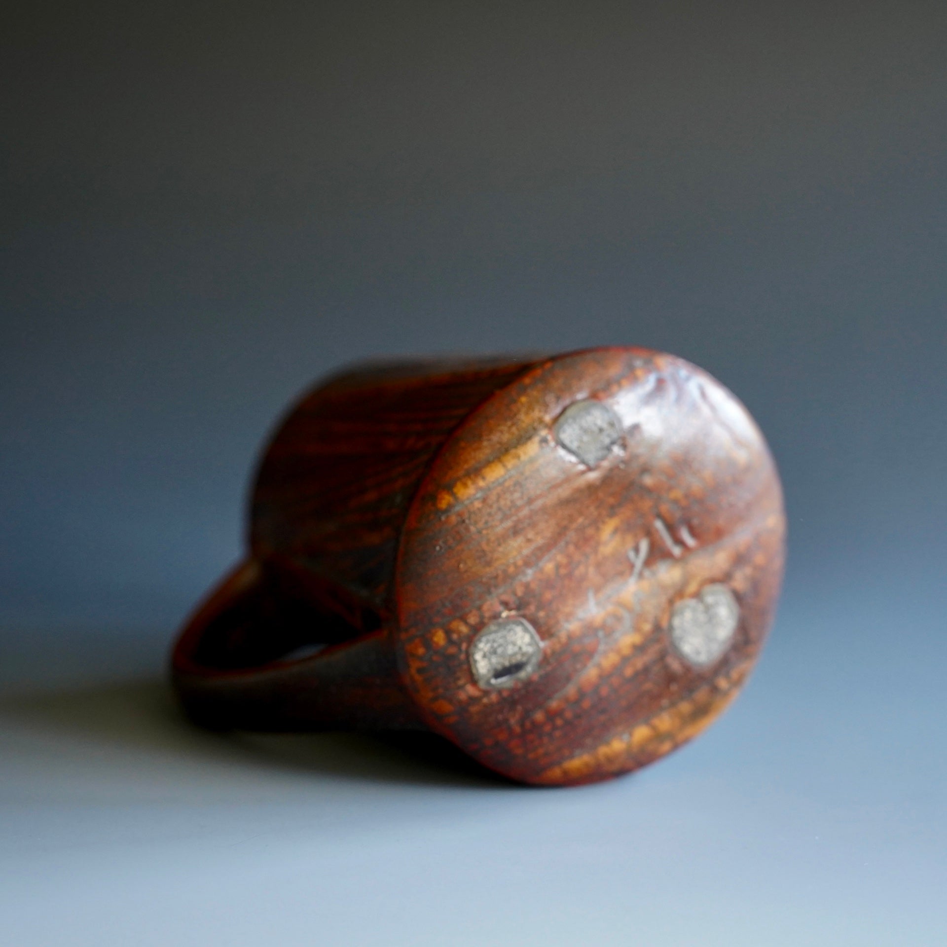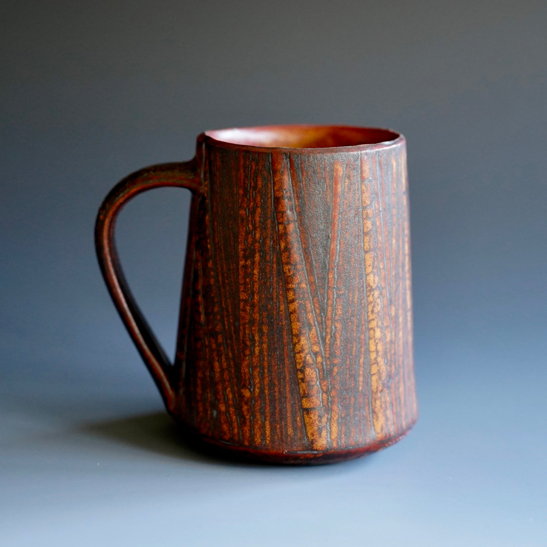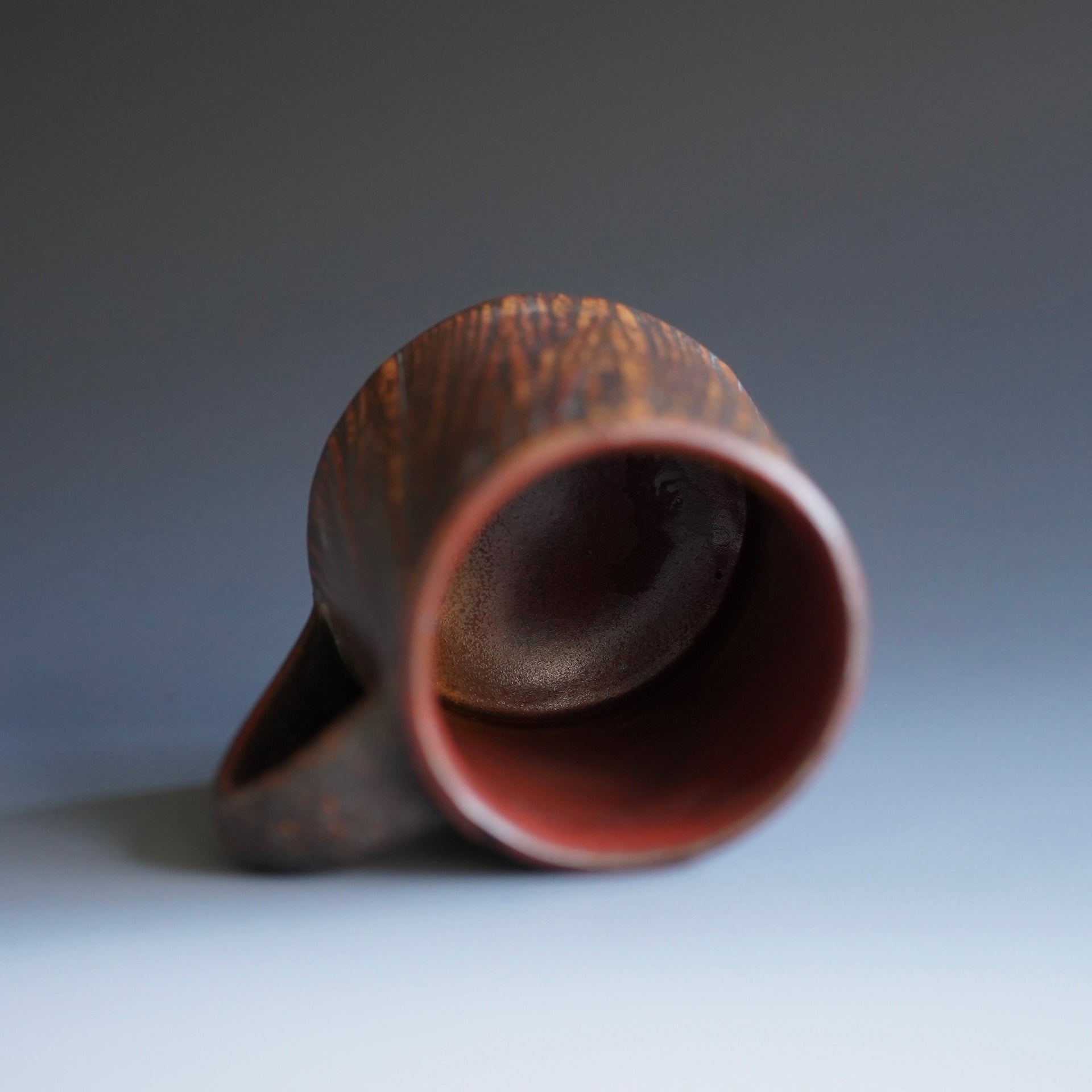 Mug cup -Beni (Red) kohiki, Kaki glaze, liner glaze : kaki, Tanka4.75 x 3.75 x 4.5 inchesholds 15 oz to brim, 13oz comfortablyhandle for three fingers