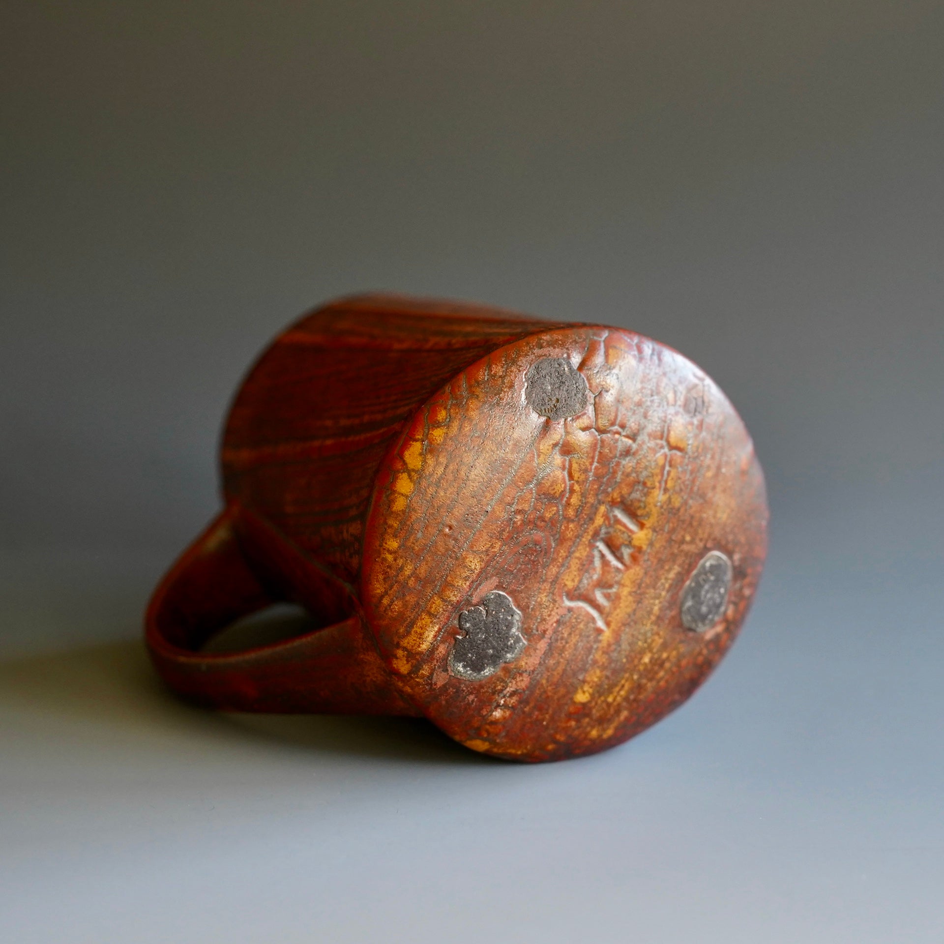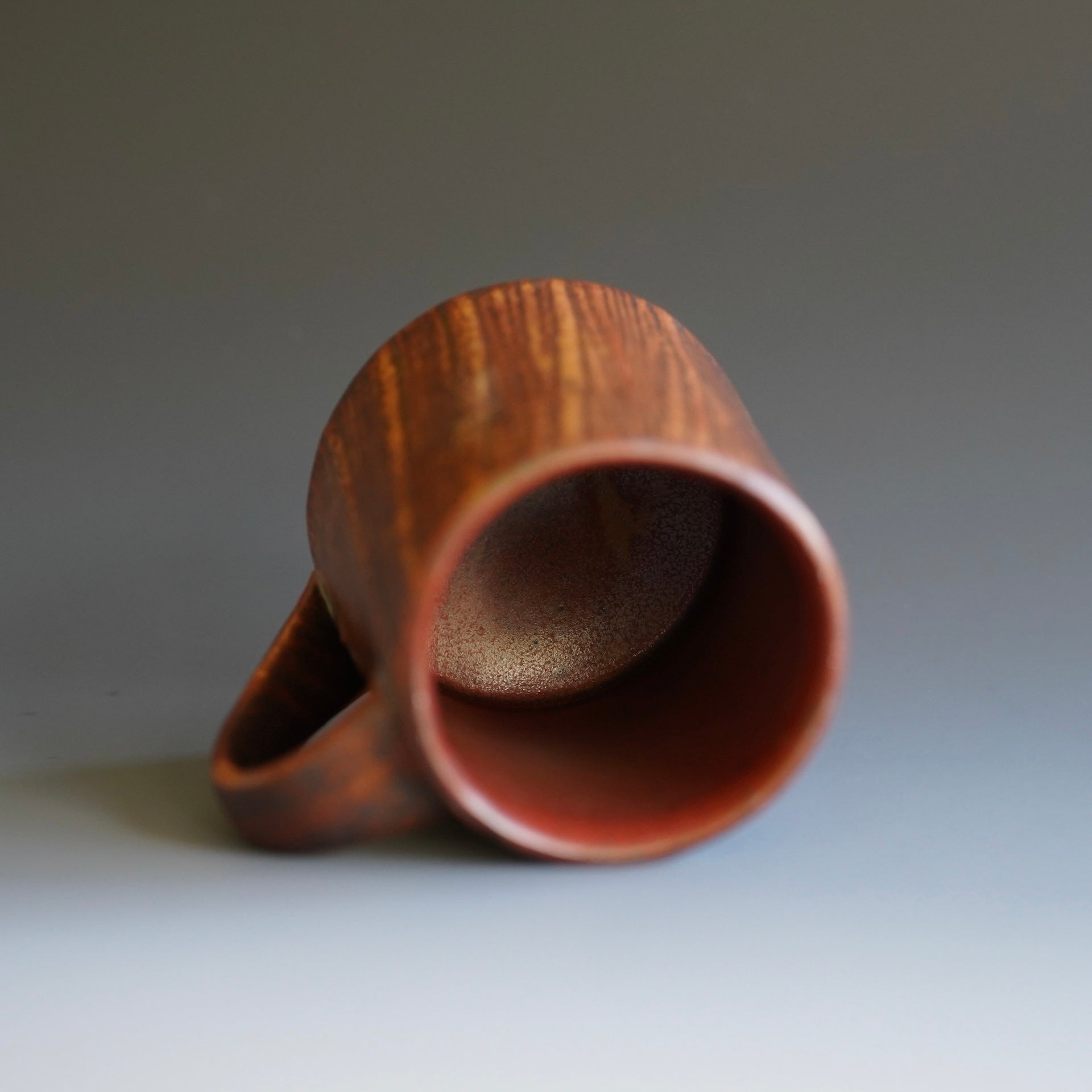 Mug cup -Beni (Red) kohiki, Kaki glaze, liner glaze : kaki, Tanka4.75 x 3.75 x 4.5 inchesholds 15 oz to brim, 13oz comfortablyhandle for three fingers