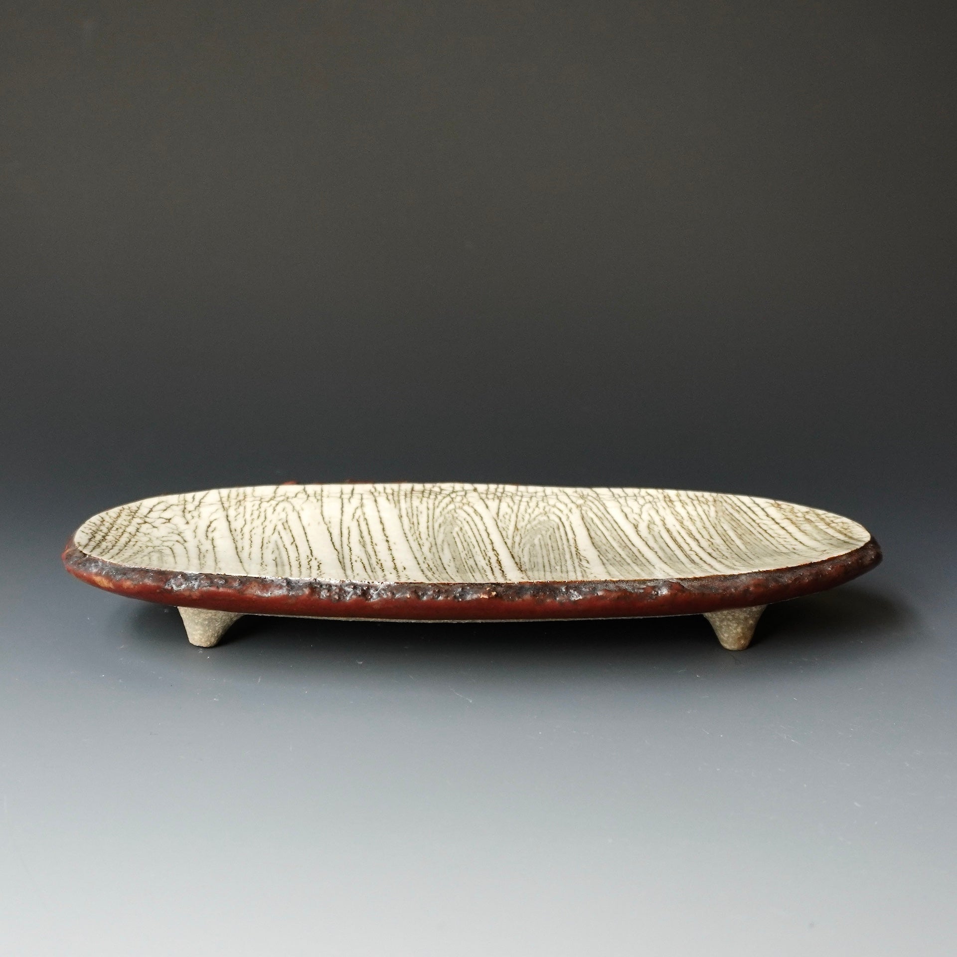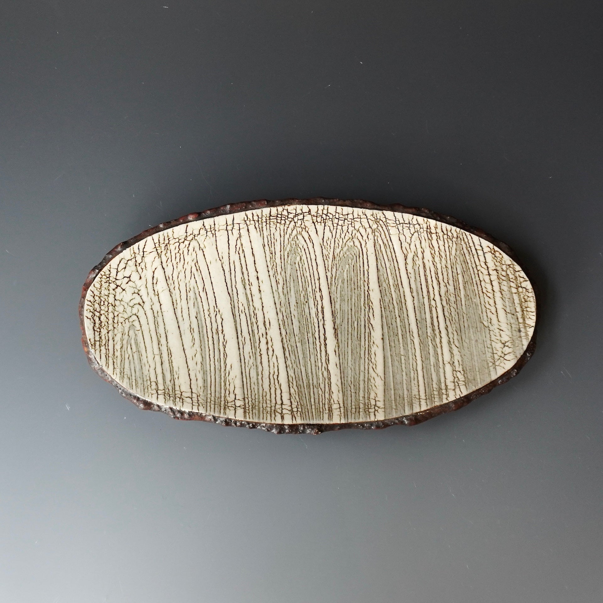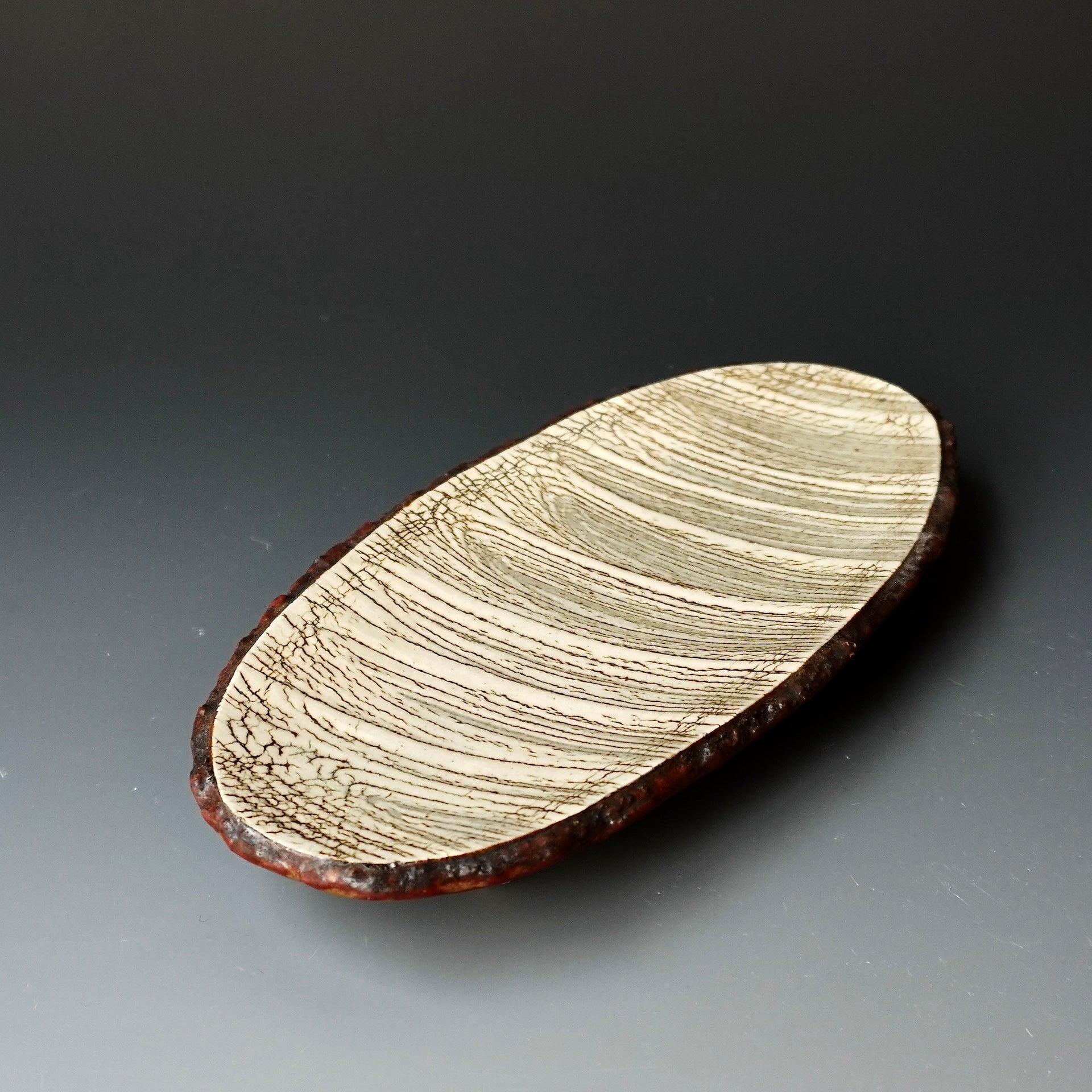 Plate - kohiki (white slip), glaze; clear4.5 x 9 x 1.25h inches