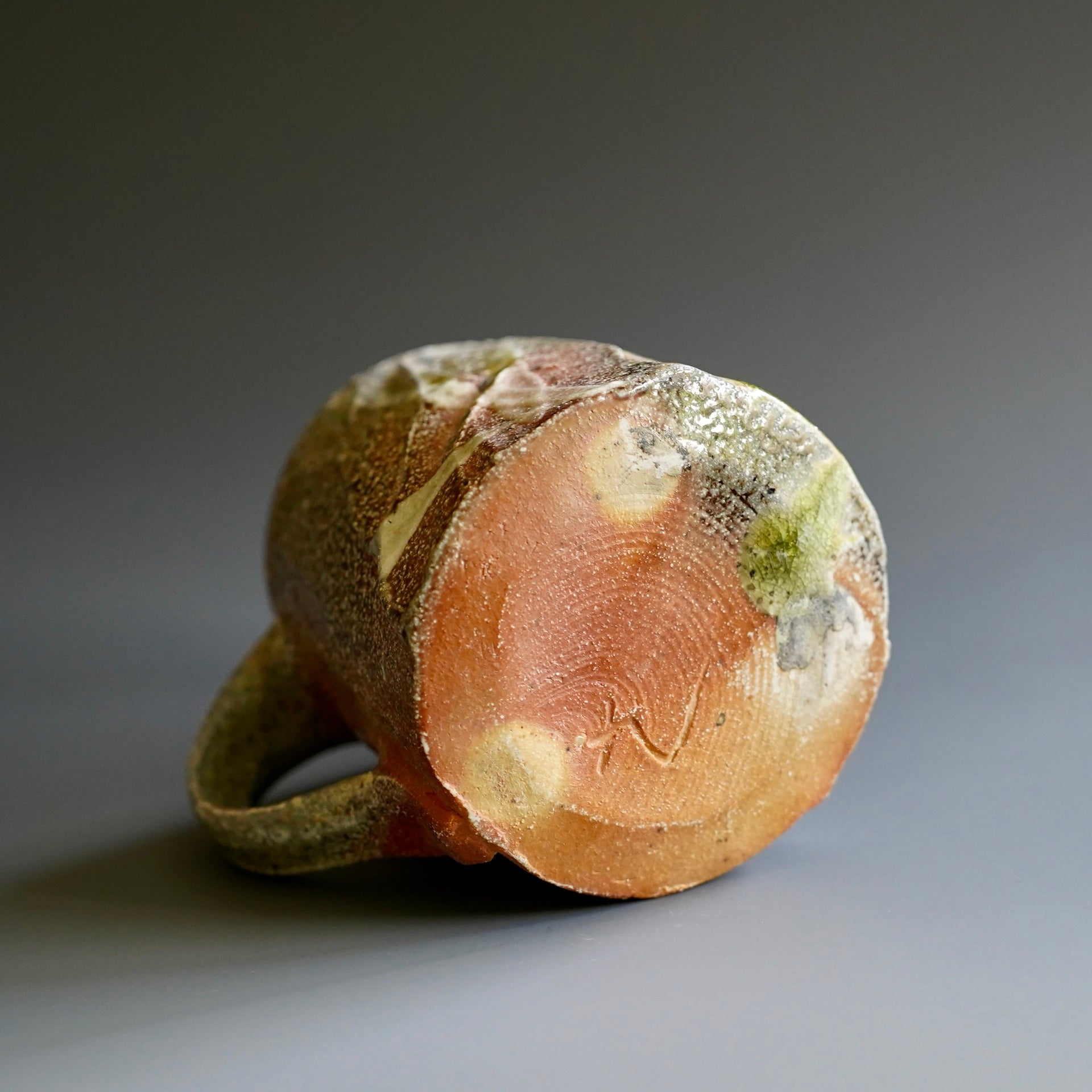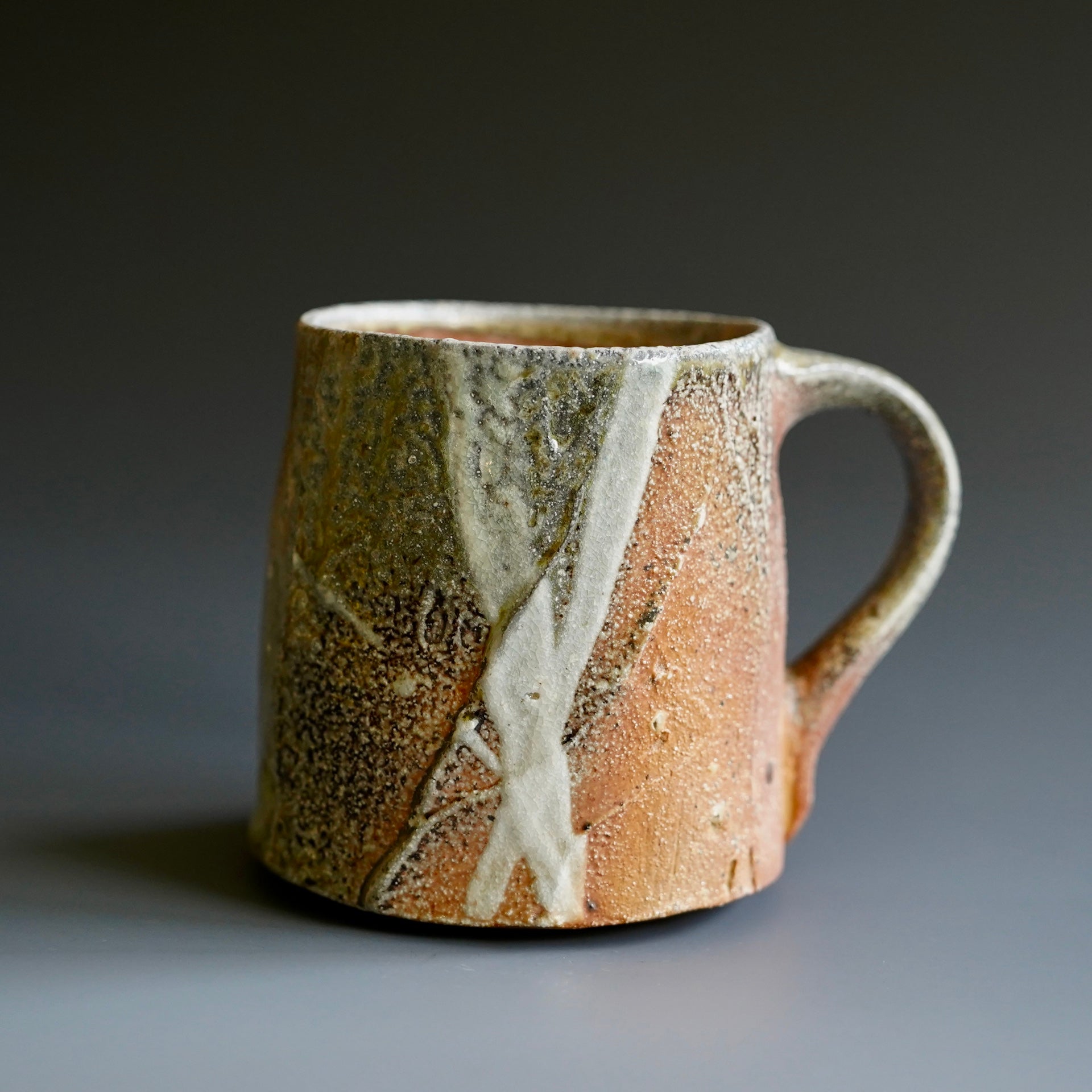 Mug - Natural wood ash, Woodfired, shino Natural wood ash: pottery surface is left unglazed and takes on color and markings during the firing from the melted wood ash4.5 x 3.5 x 3.75h inchesHolds 11ozShipping and Policy(m-438w)