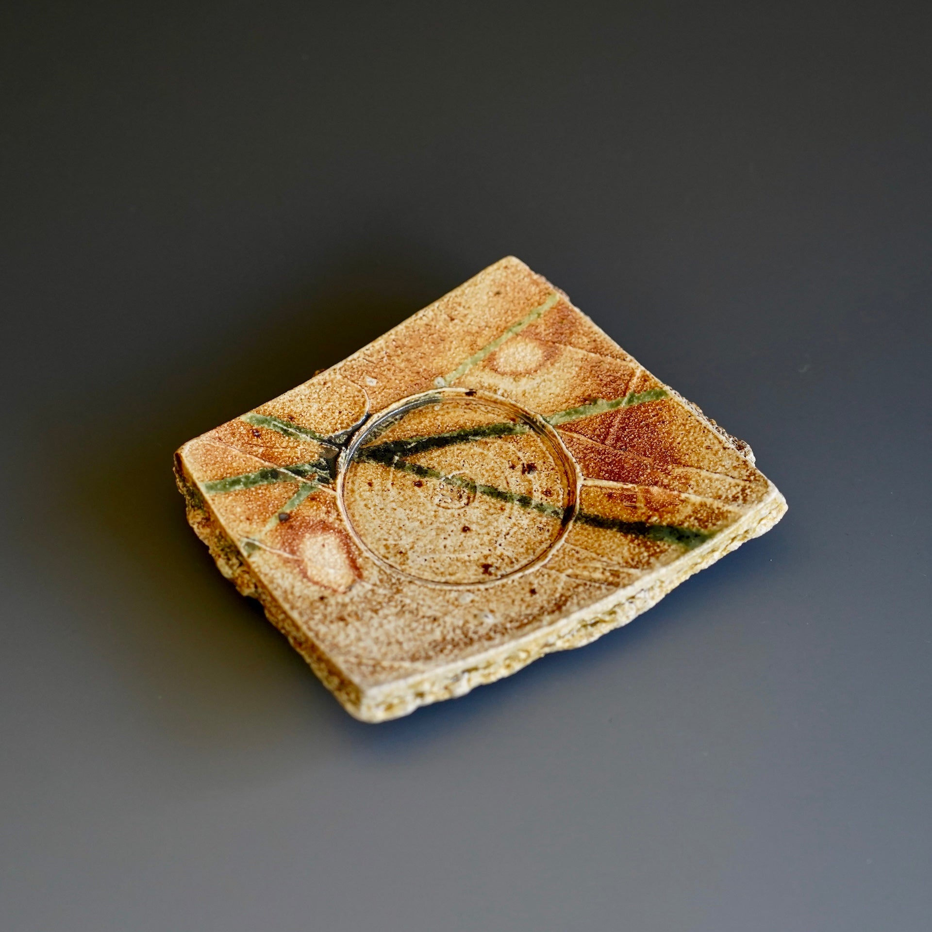 Plate - Natural wood ash, WoodfiredNatural wood ash: pottery surface is left unglazed and takes on color and markings during the firing from the melted wood ash5 x 4 x 0.75h inchesShipping and Policy(w-742)