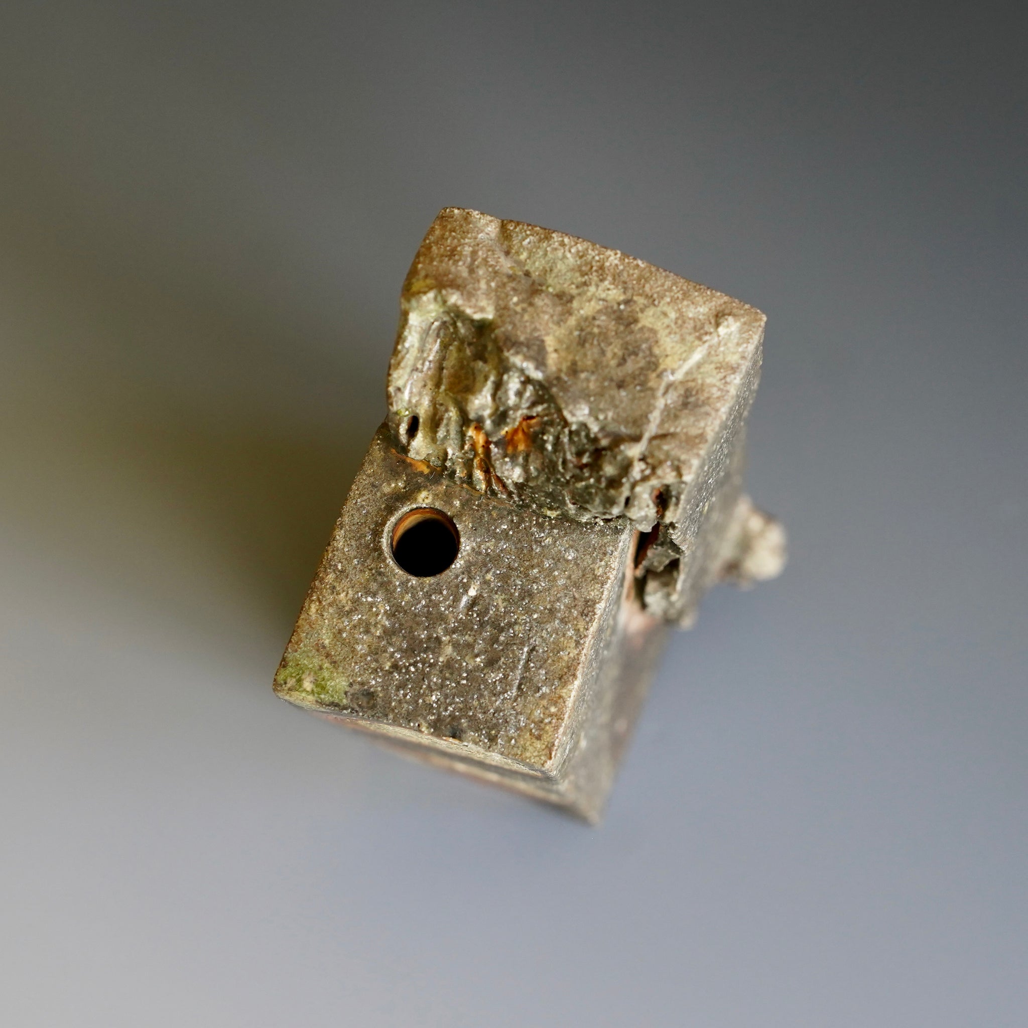 Sculpture / Vase - natural wood ash, woodfiredNatural wood ash: pottery surface is left unglazed and takes on color and markings during the firing from the melted wood ash4w x 2.5d x 6h inchesShipping and Policy(w-708)