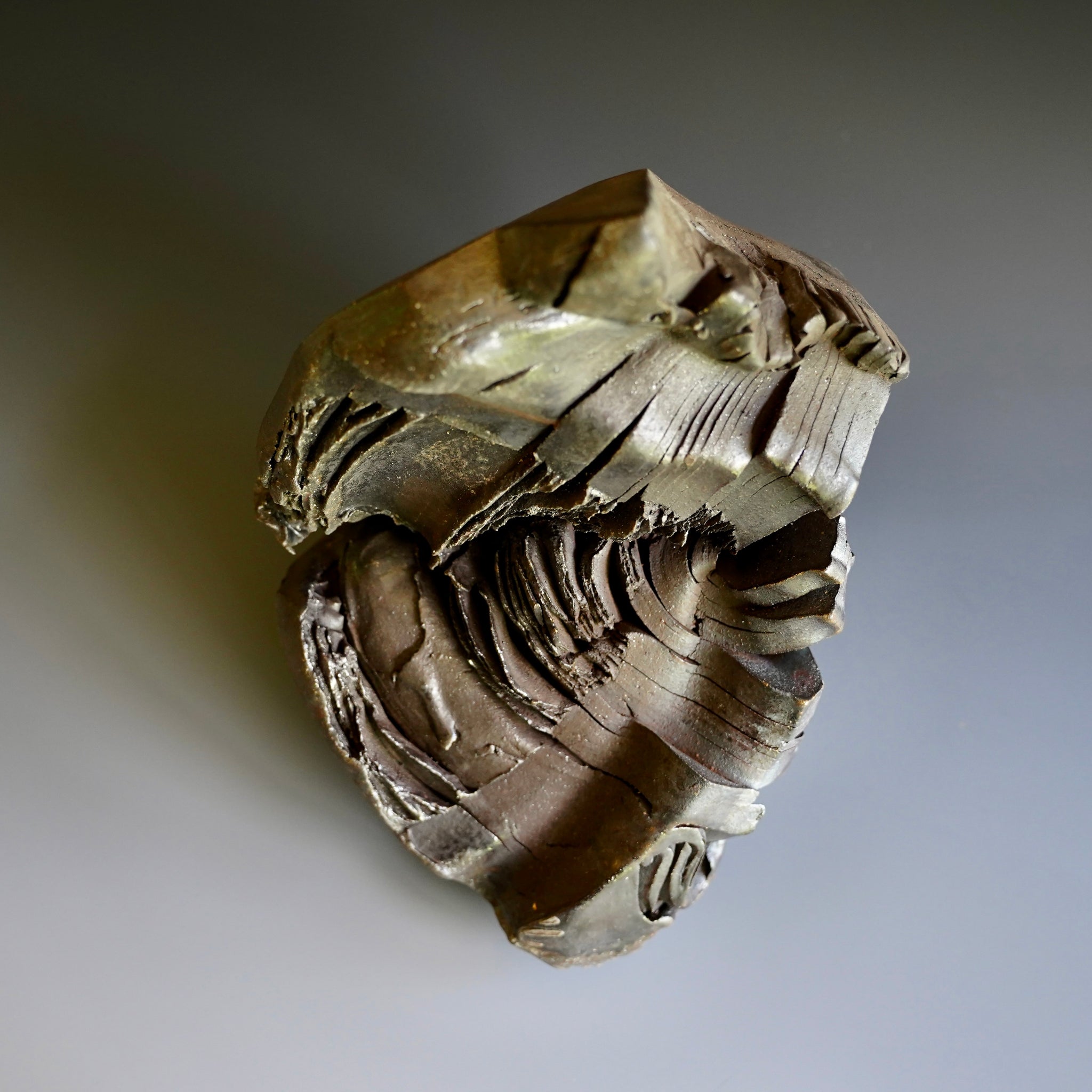Sculpture- Natural wood ash, WoodfiredNatural wood ash: pottery surface is left unglazed and takes on color and markings during the firing from the melted wood ash10 x 6 x 9.5h inches