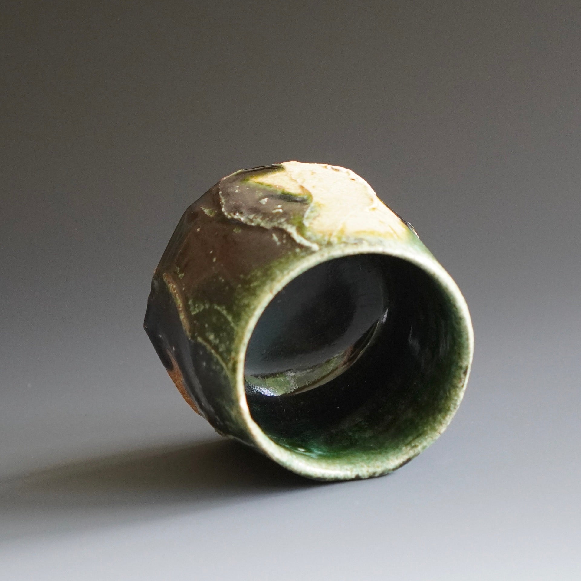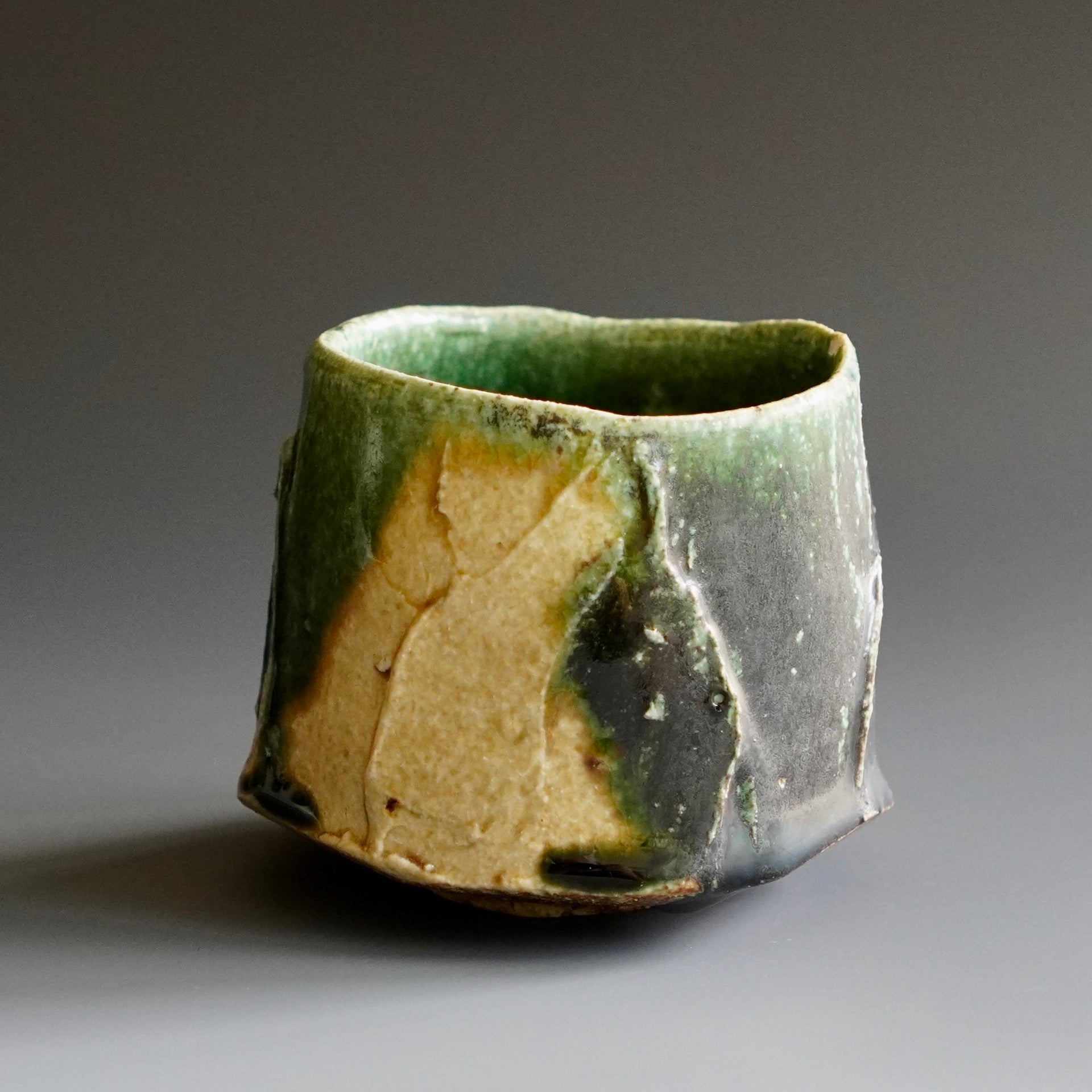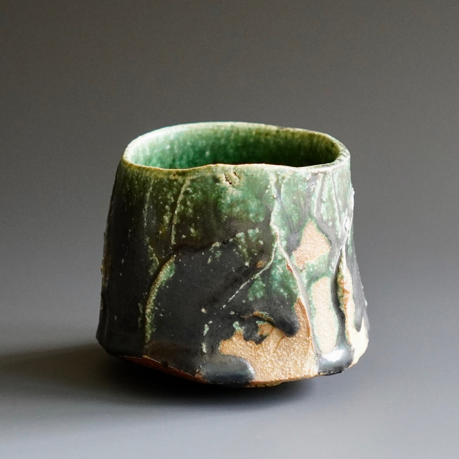 Yunomi (tea cup) - Woodfired with Oribe glaze3.25 x 3.25 x 2.5h inchHolds 5 ozShipping and Policy(y-908)