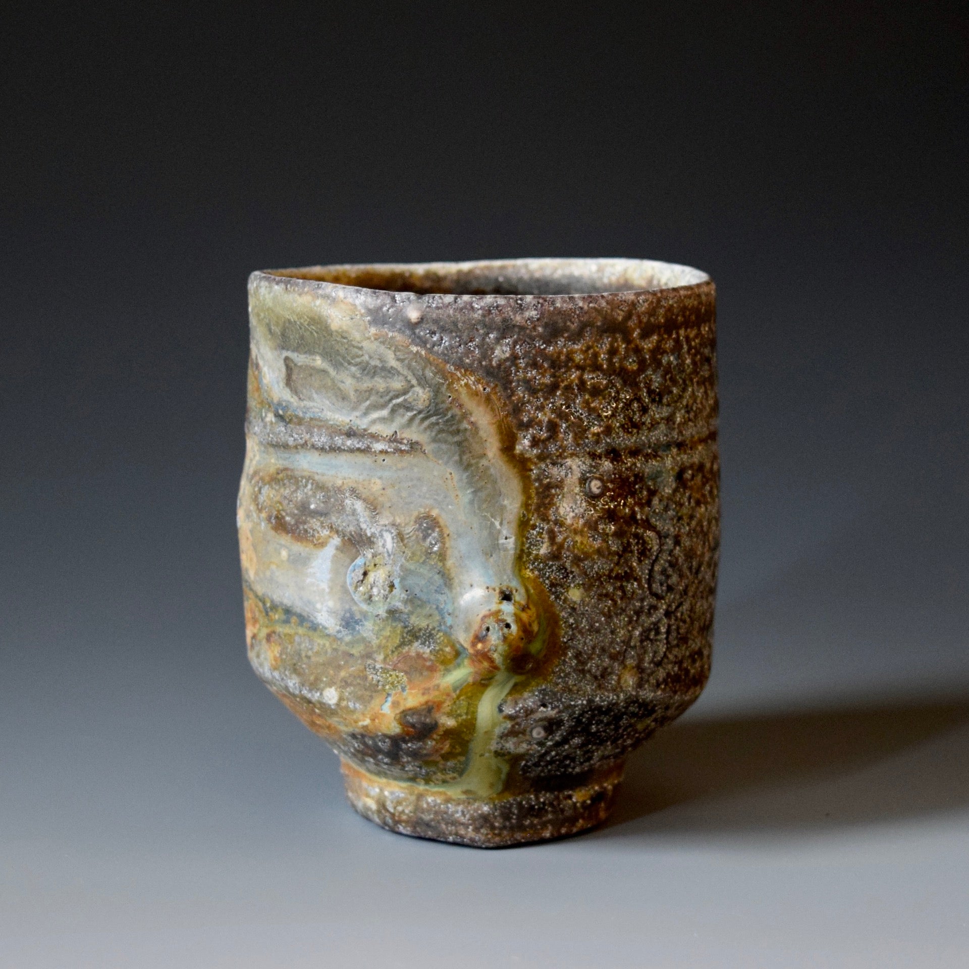 Yunomi- Natural wood ash , WoodfiredNatural wood ash: pottery surface is left unglazed and takes on color and markings during the firing from the melted wood ash