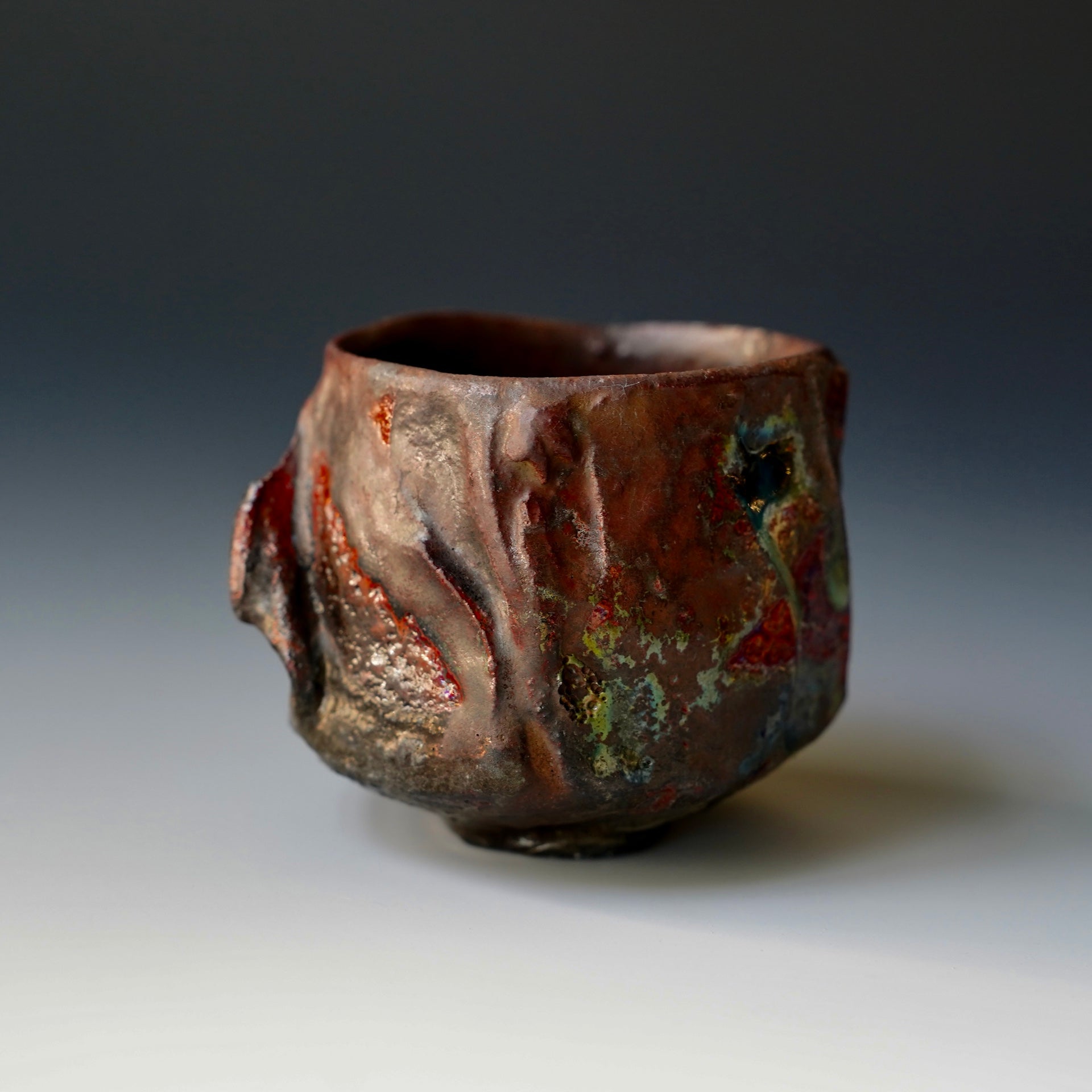 Yunomi (tea cup) - Woodfired, Tanka, Oribe glaze3 x 3 x 2.75h inchShipping and Policy(y-1102)