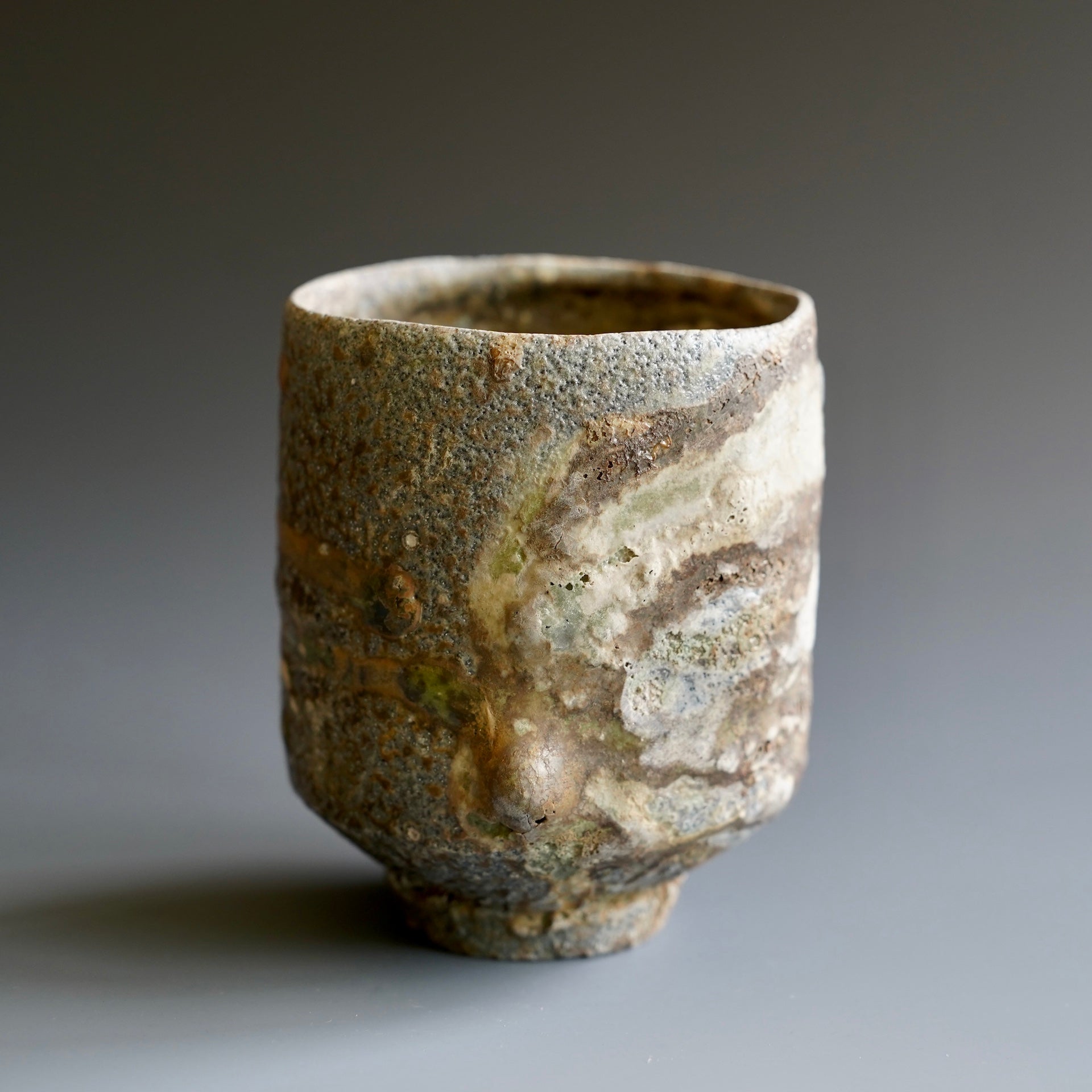 Yunomi (tea cup) - Natural wood ash, WoodfiredNatural wood ash: pottery surface is left unglazed and takes on color and markings during the firing from the melted wood ash