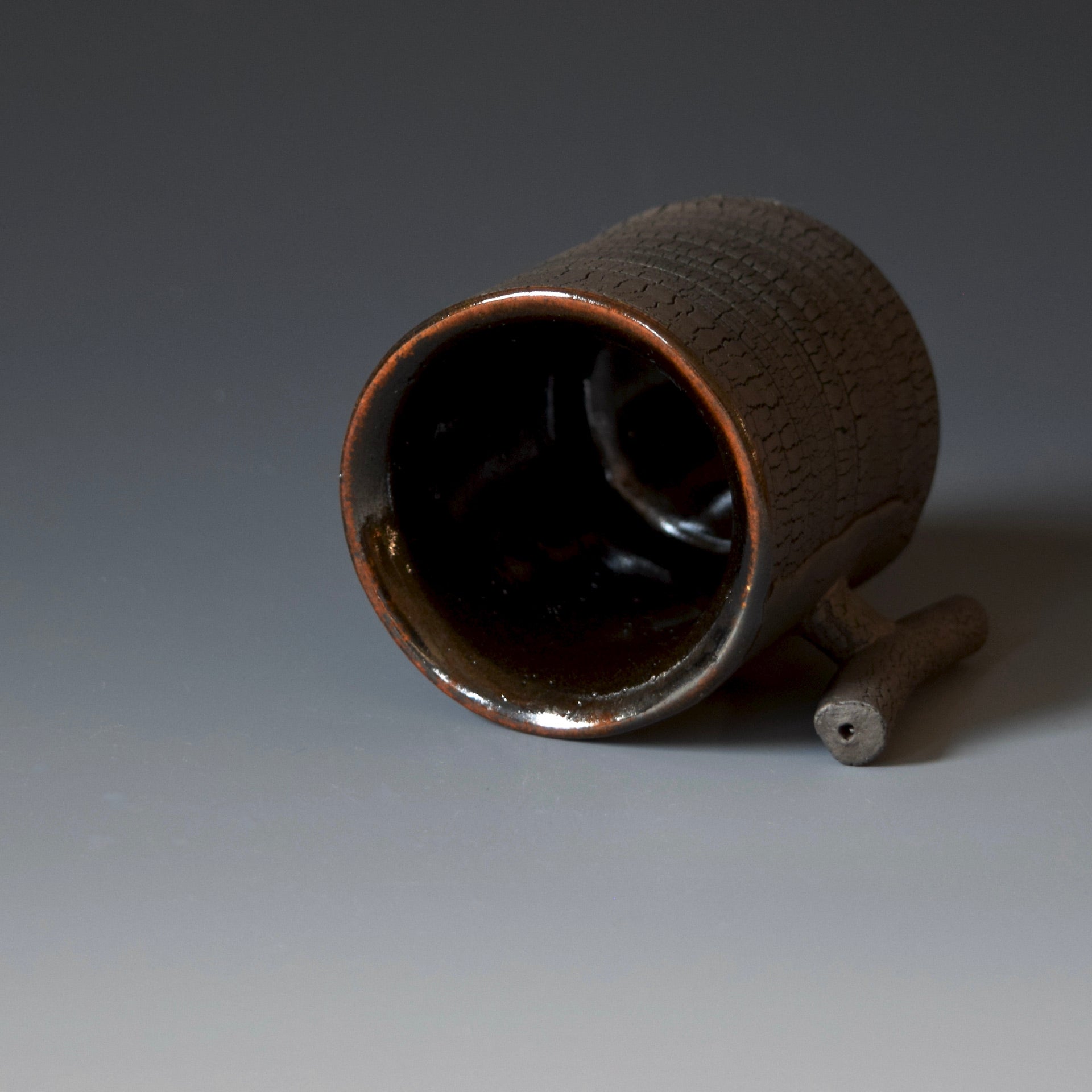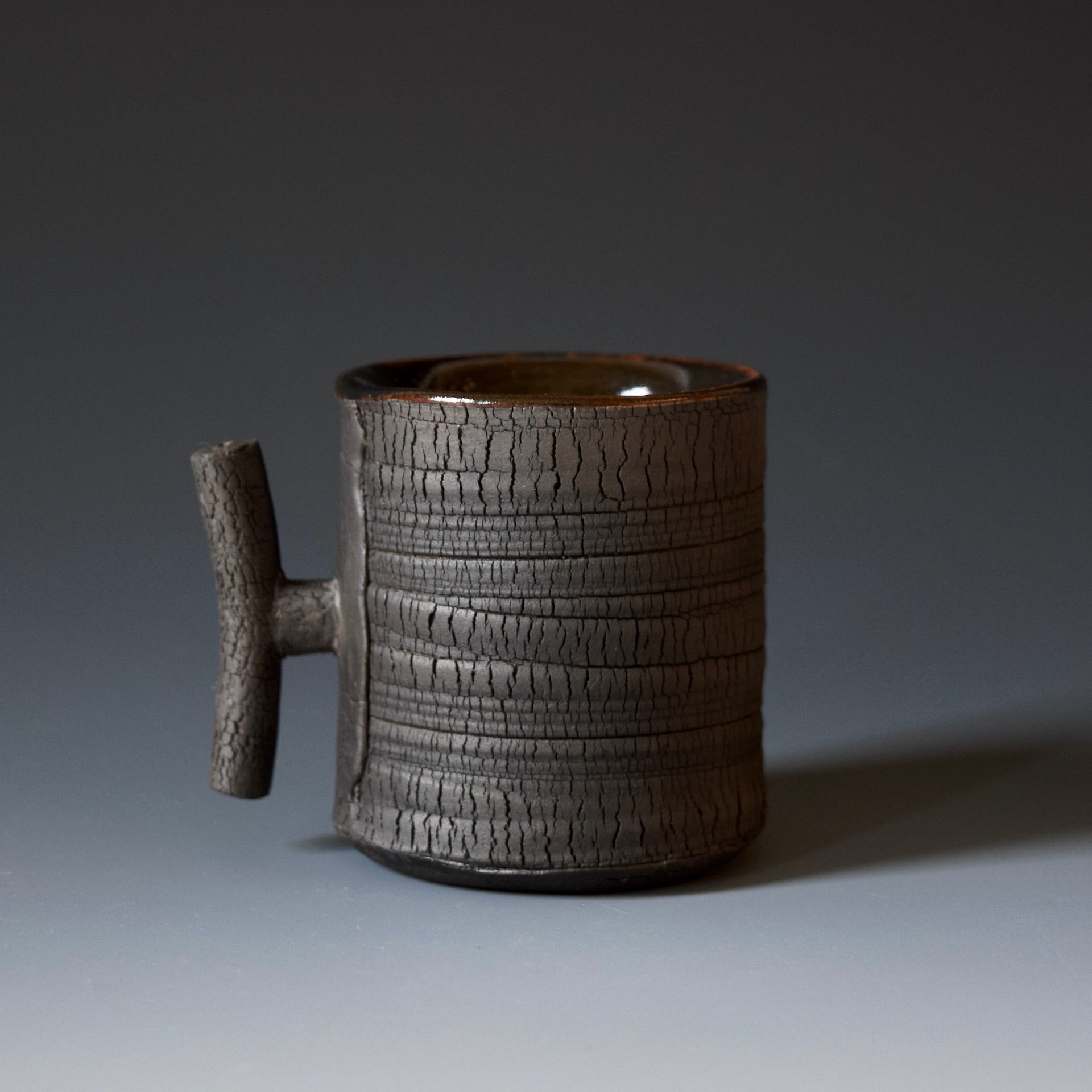 Espresso cup - black kohiki, liner glaze : tenmokuThe piece is gas fired and then fired again in a sagger to create a black surface.2 x 2.75 x 2.25 inches, Holds 2oz