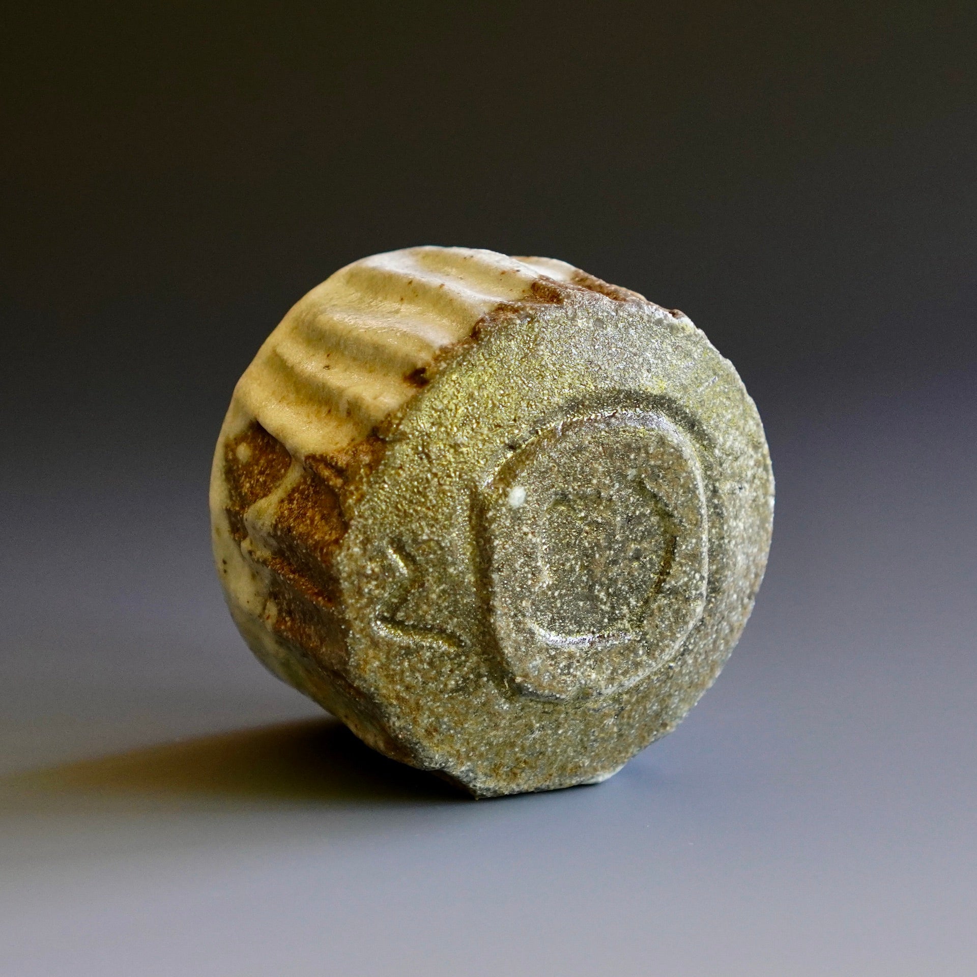 Guinomi (sake cup) - Natural wood ash with Shino glazeNatural wood ash: pottery surface is left unglazed and takes on color and markings during the firing from the melted wood ash