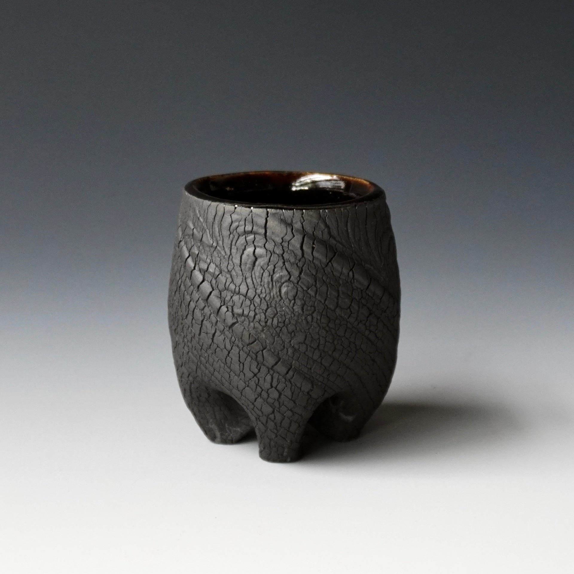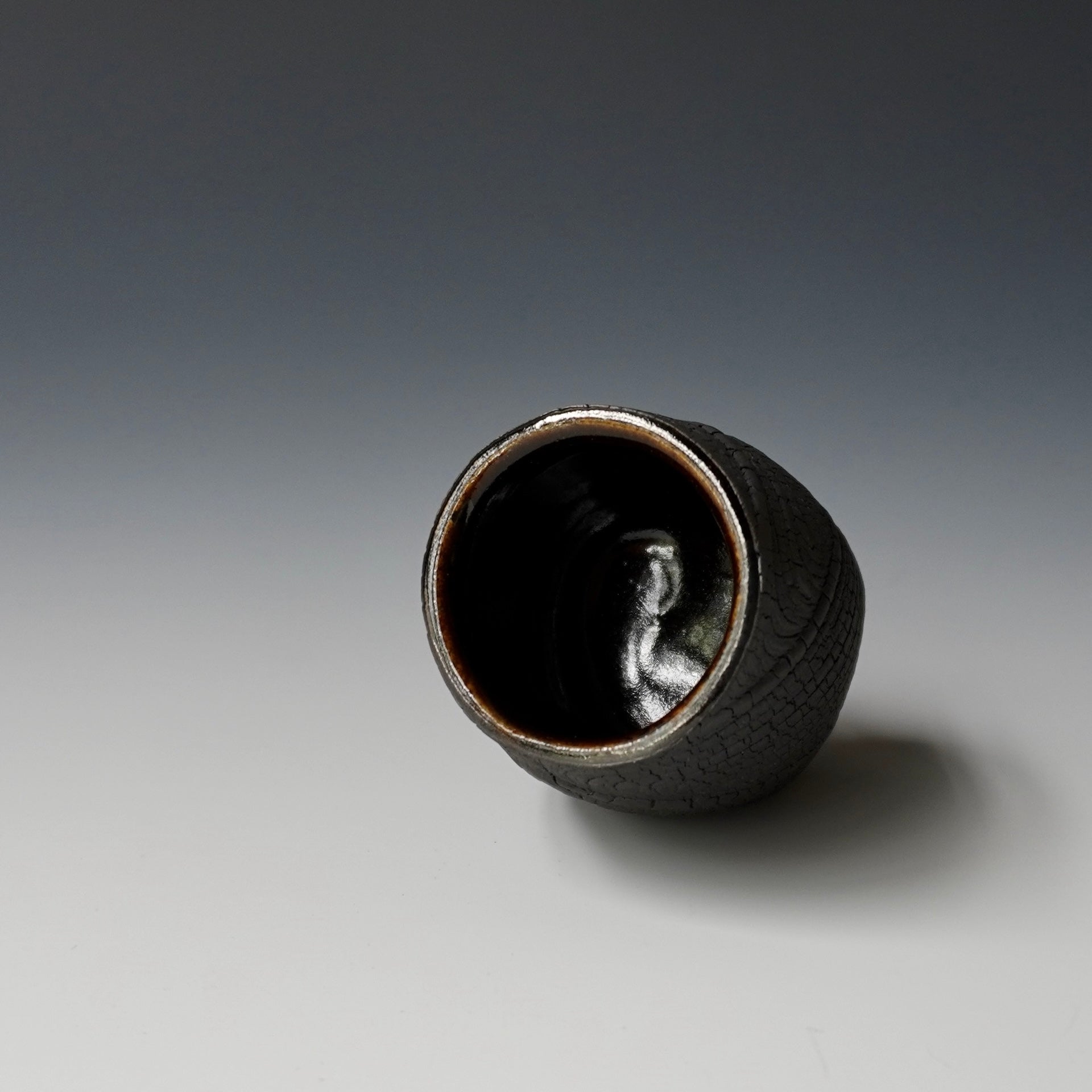 Sake cup - black kohiki , liner glaze : Tenmoku