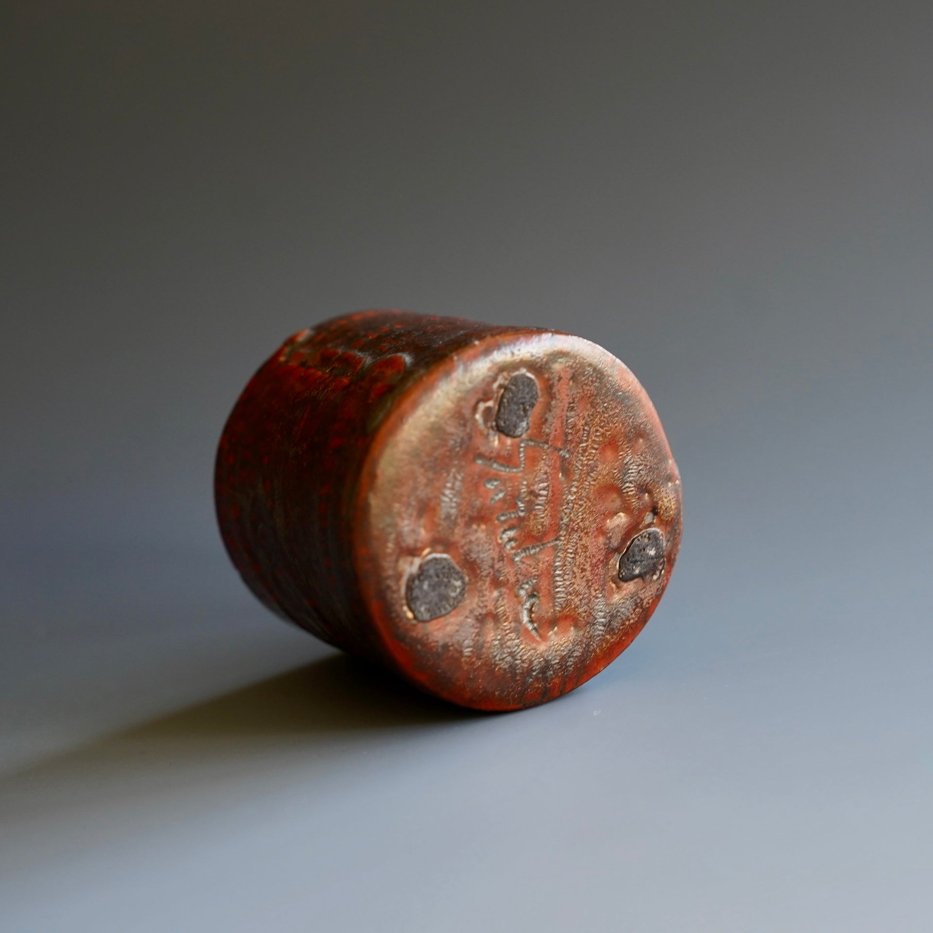 Sake cup -Beni (Red) kohiki, Kaki glaze, liner glaze : kaki, Tanka2 x 2 x 2.25 inches, holds 1.8 ozShipping and Policy