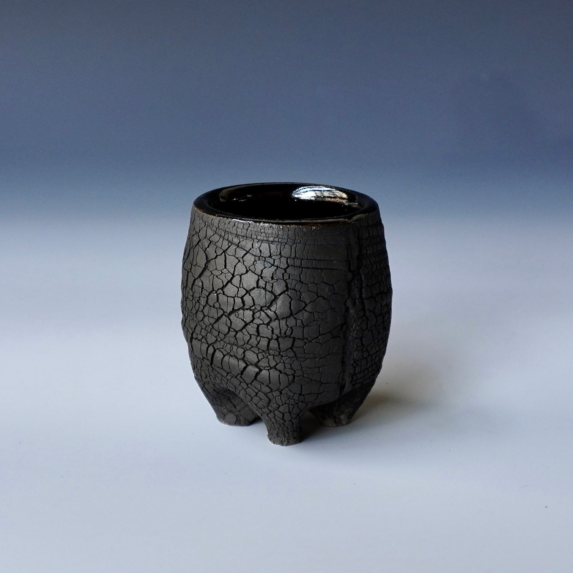 Sake cup - black kohiki , liner glaze : Tenmoku2 x 2 x 2.25 inches, holds 1.8 ozShipping and Policy