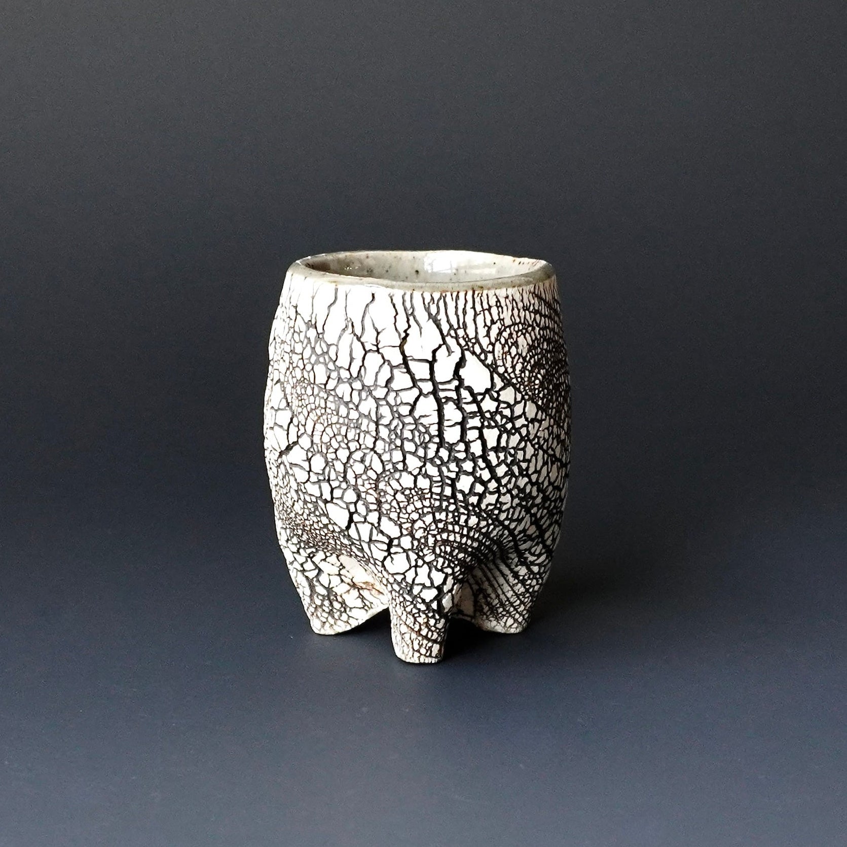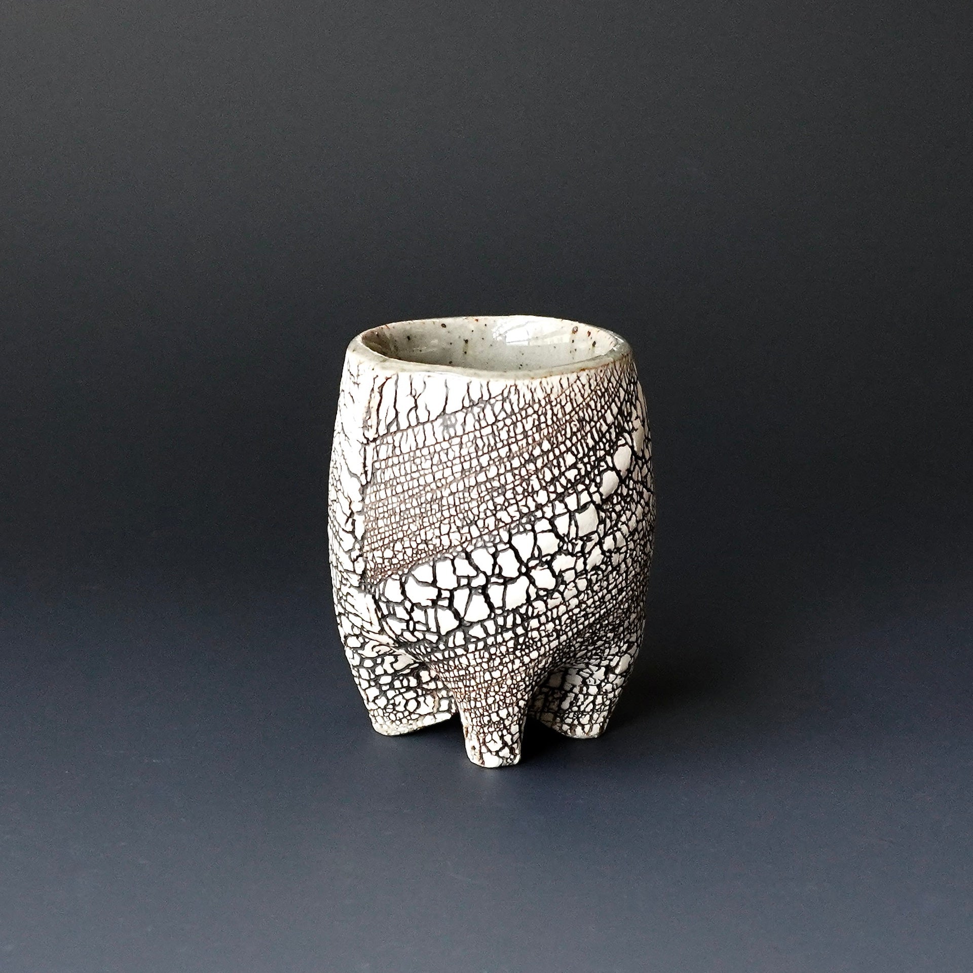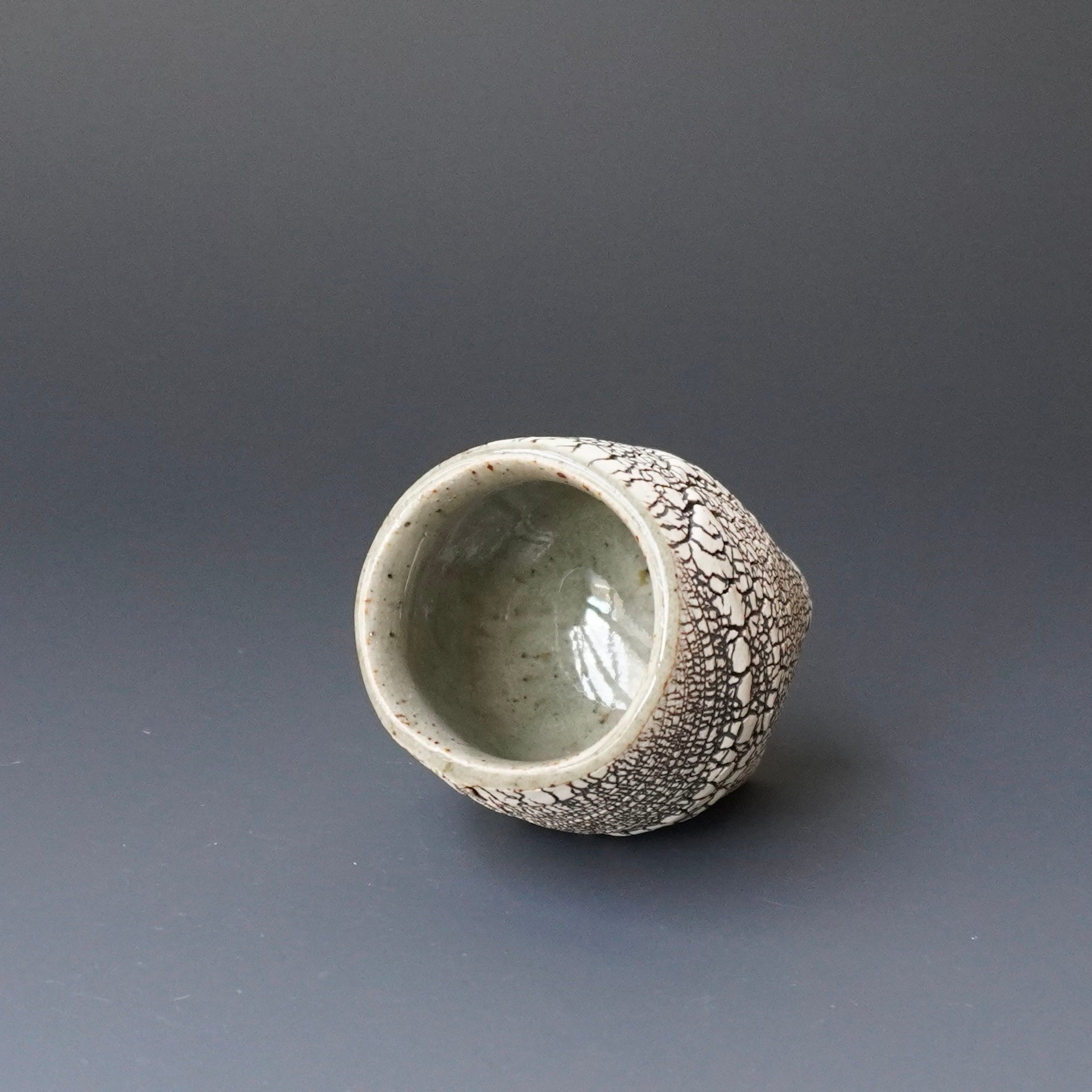 Sake cup - kohiki (white slip), liner glaze : celadon2 x 2 x 2.25 inches, holds 1.8 oz