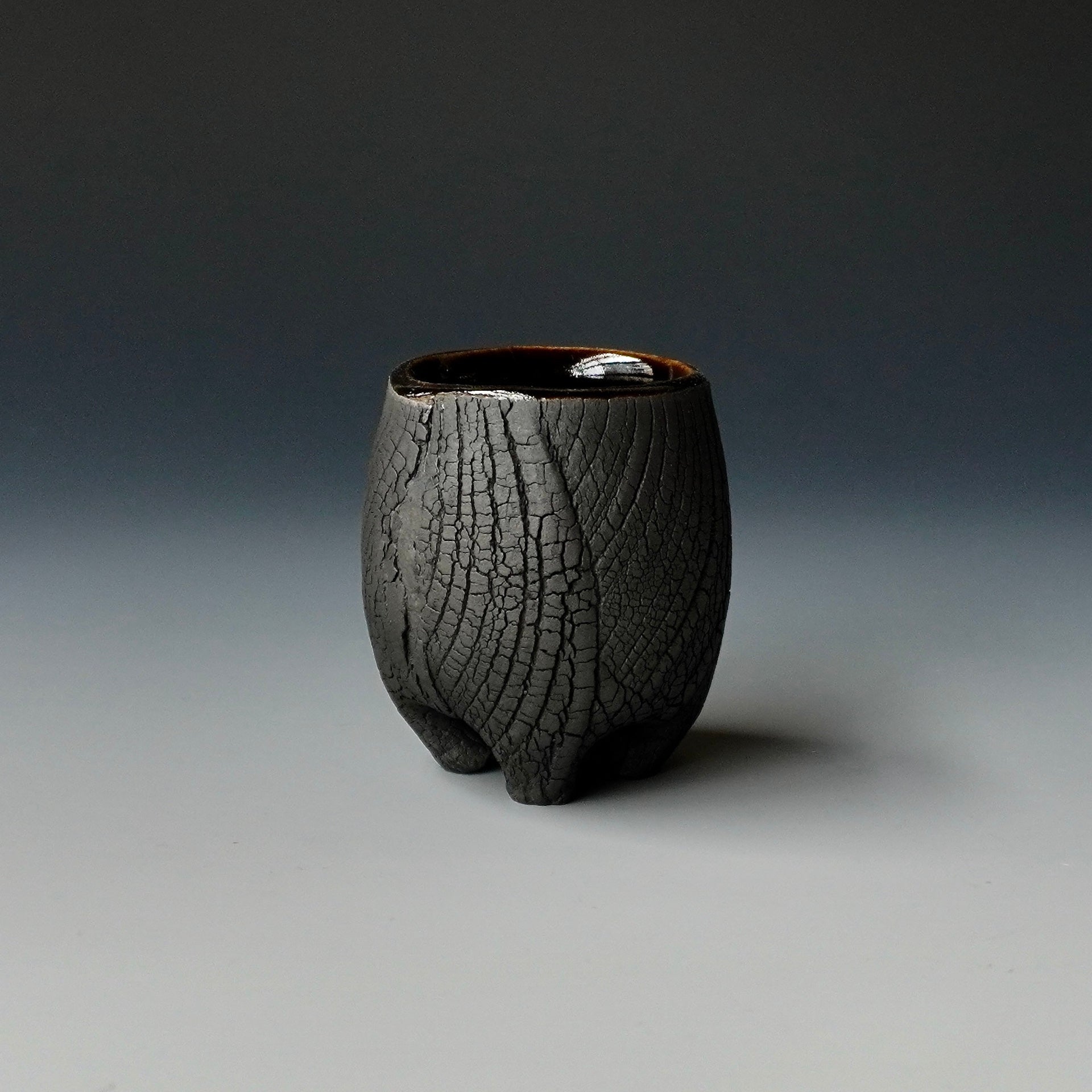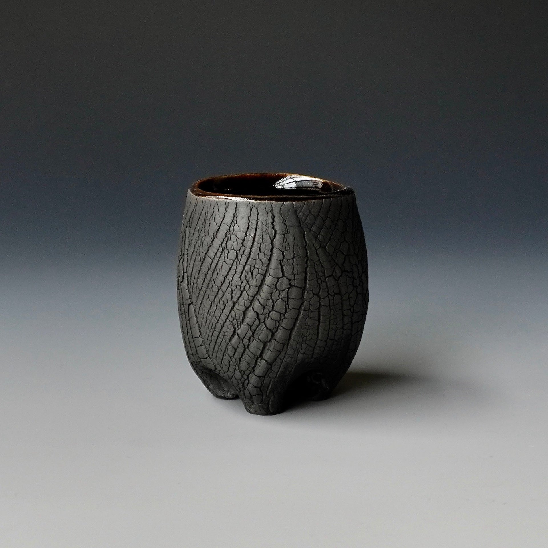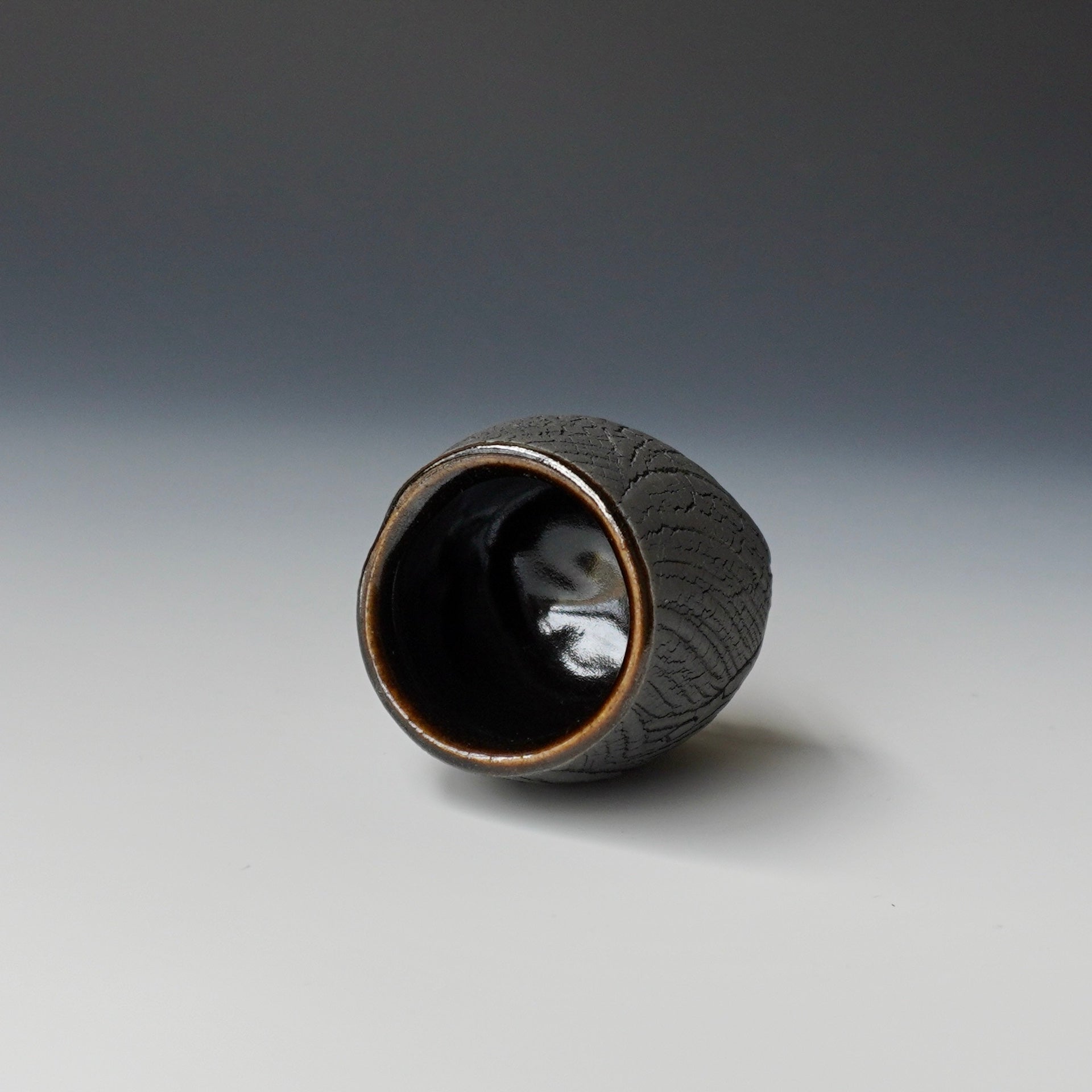 Sake cup - black kohiki , liner glaze : Tenmoku2 x 2 x 2.25 inches, holds 1.8 ozShipping and Policy