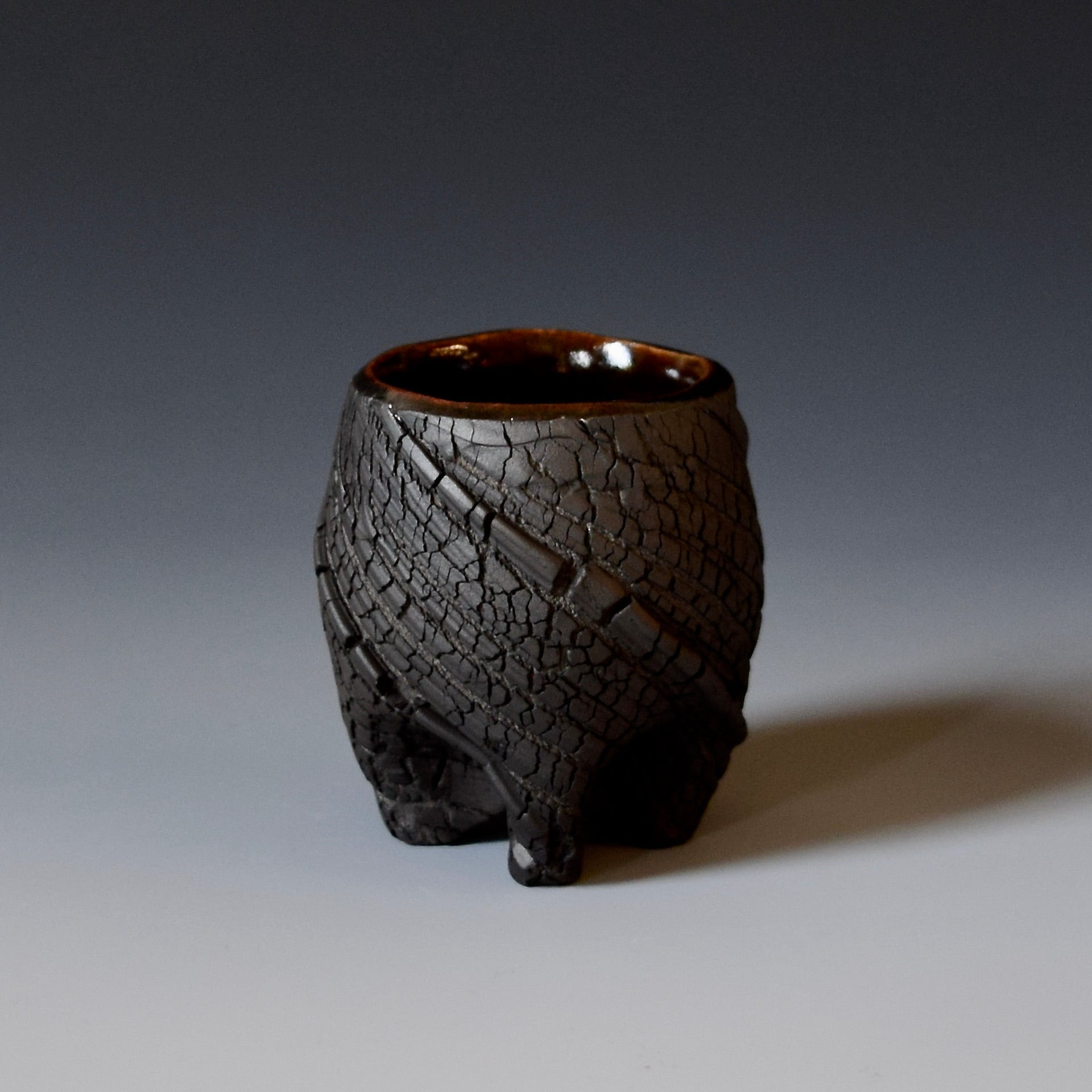 Sake cup - black kohiki , liner glaze : Tenmoku