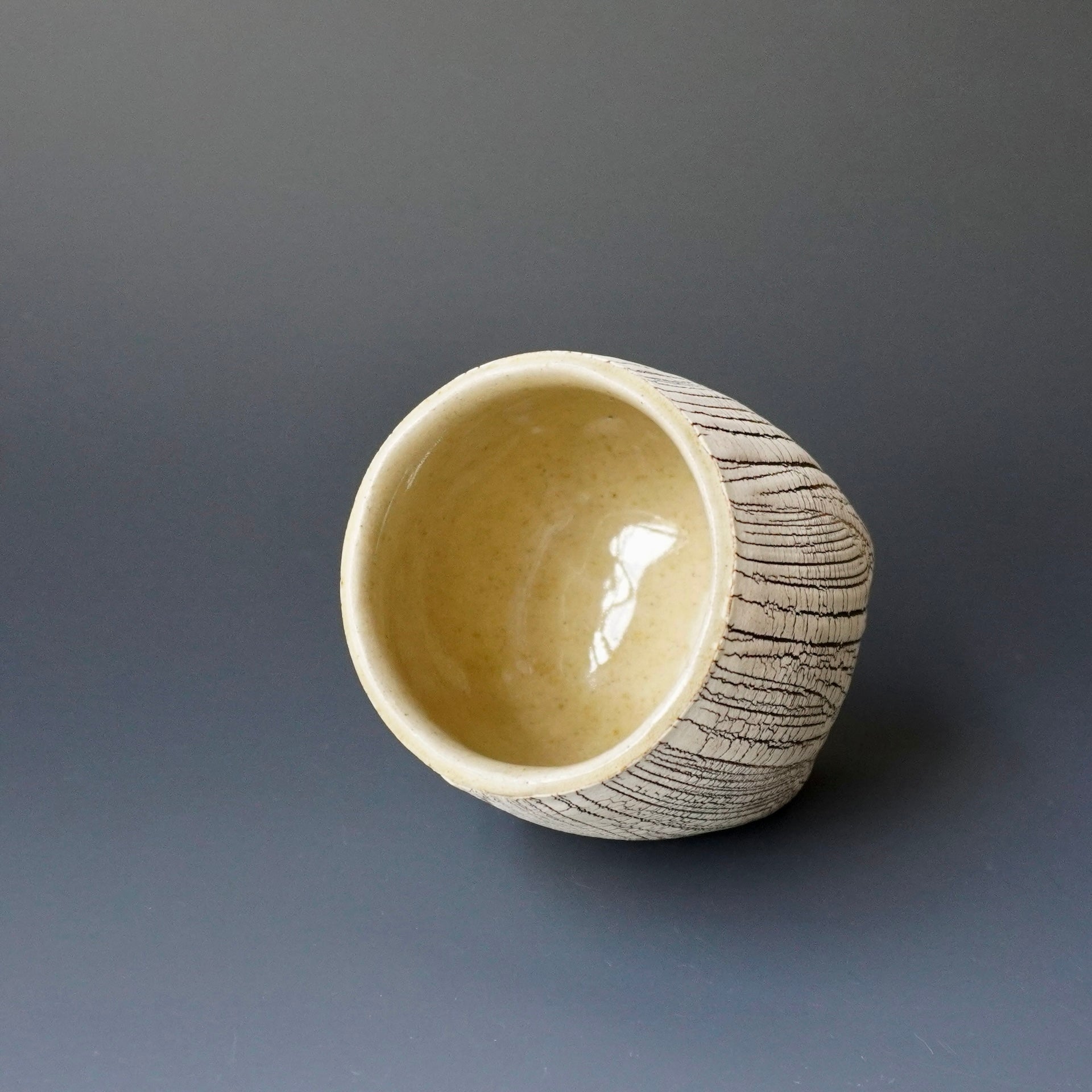 Tea cup - kohiki (white slip), liner glaze : celadon3.5 x 3.5 x 4h inchesHolds 8.5 oz to the brim, 6.5oz comfortablymicrowave and dishwasher safeShipping and Policy