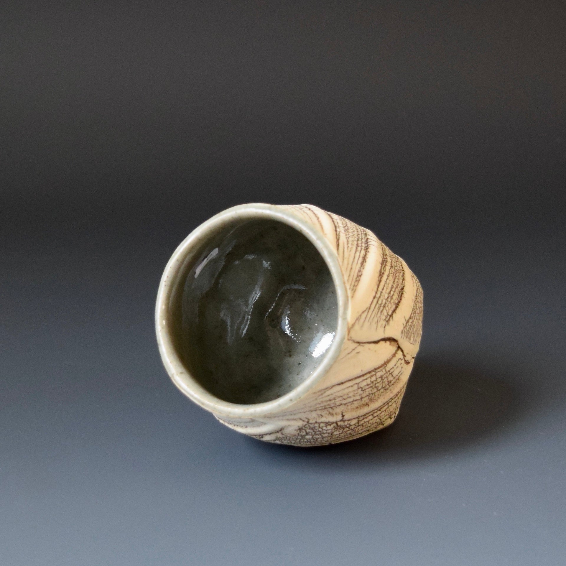 Tea cup - kohiki (white slip), liner glaze : celadon3.5 x 3.5 x 4h inchesHolds 8.5 oz to the brim, 6.5oz comfortablymicrowave and dishwasher safeShipping and Policy