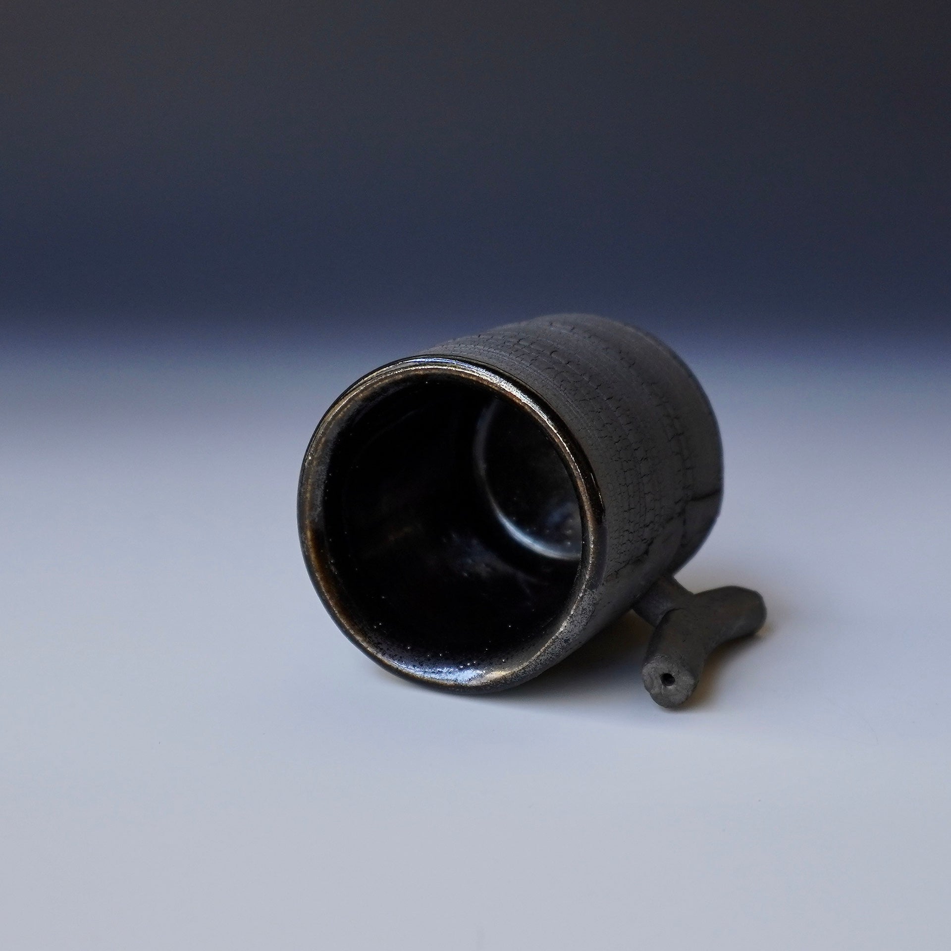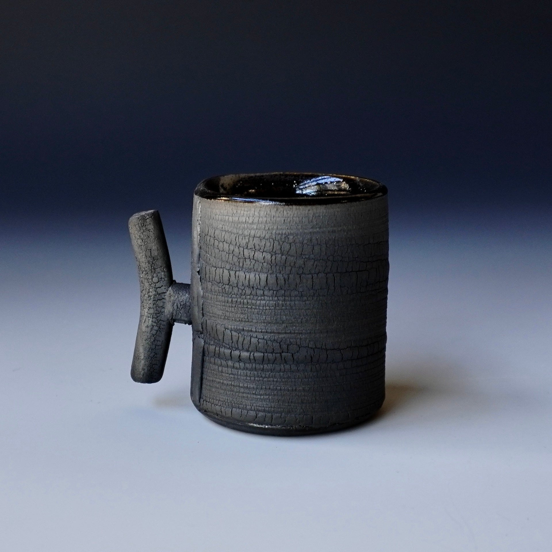 Espresso cup - black kohiki, liner glaze : tenmokuThe piece is gas fired and then fired again in a sagger to create a black surface.2 x 2.75 x 2.25 inches, Holds 2oz