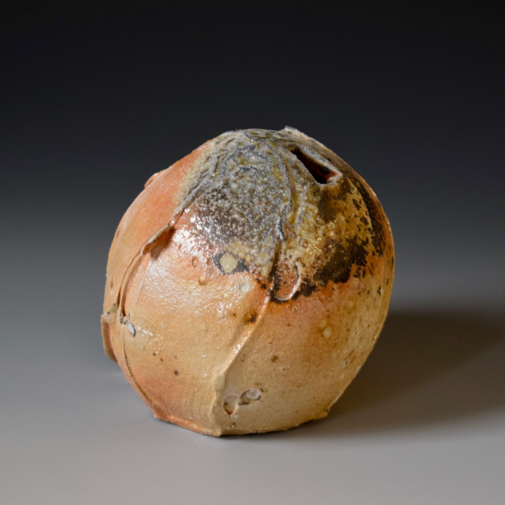 Natural wood ash: pottery surface is left unglazed and takes on color and markings during the firing from the melted wood ash