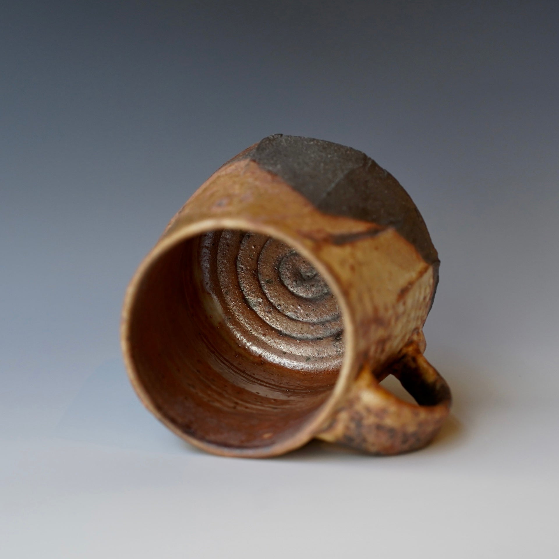Mug - Natural wood ash, Woodfired, Shino glazeNatural wood ash: pottery surface is left unglazed and takes on color and markings during the firing from the melted wood ash4.75 x 3.75 x 3.5h inchesHolds 11ozShipping and Policy(m-331)