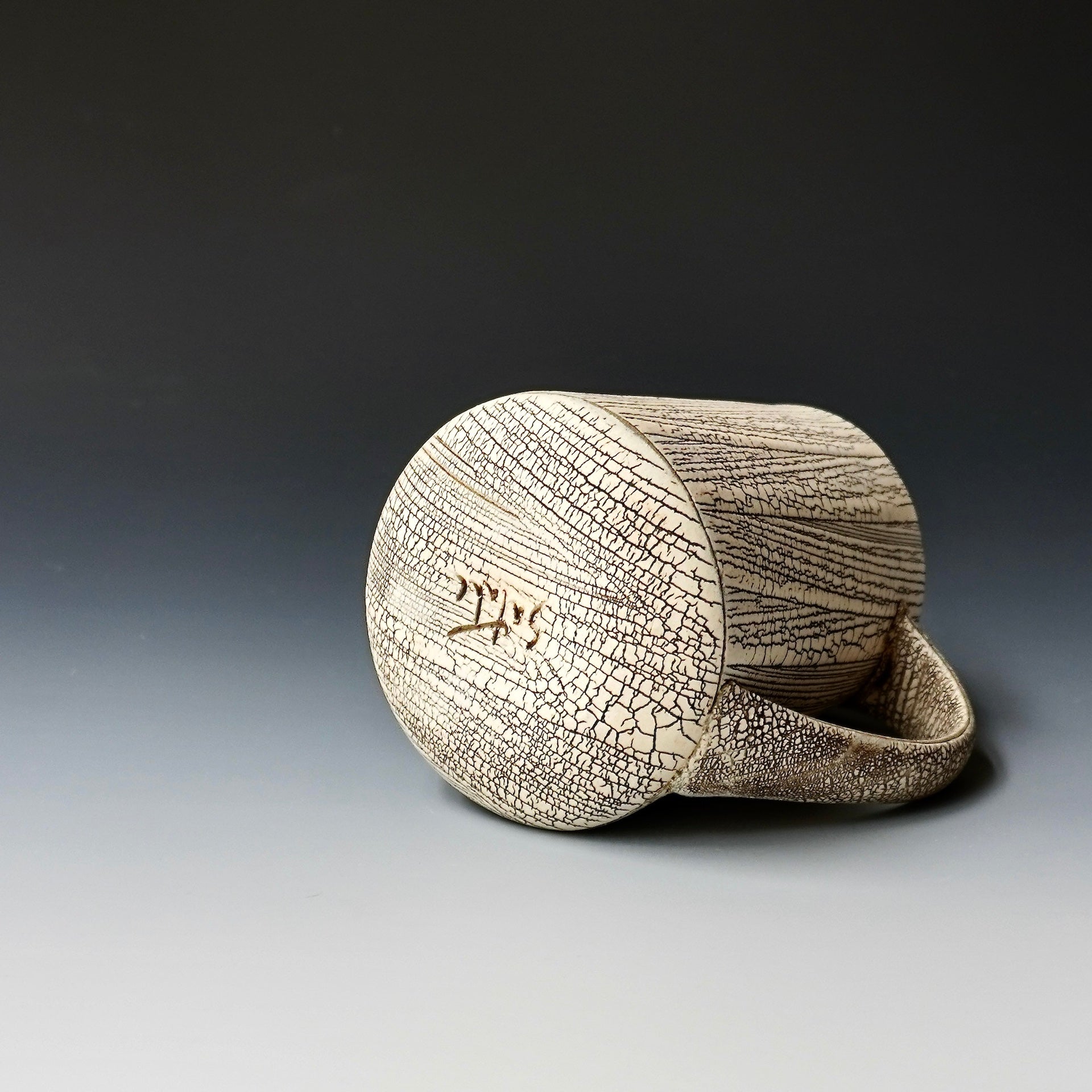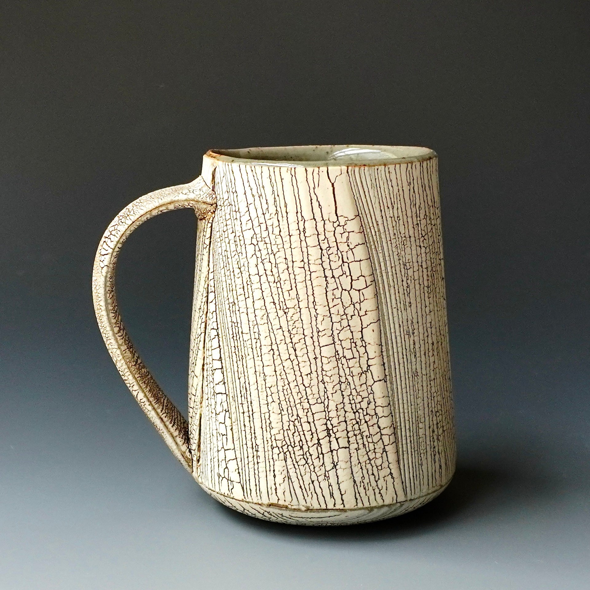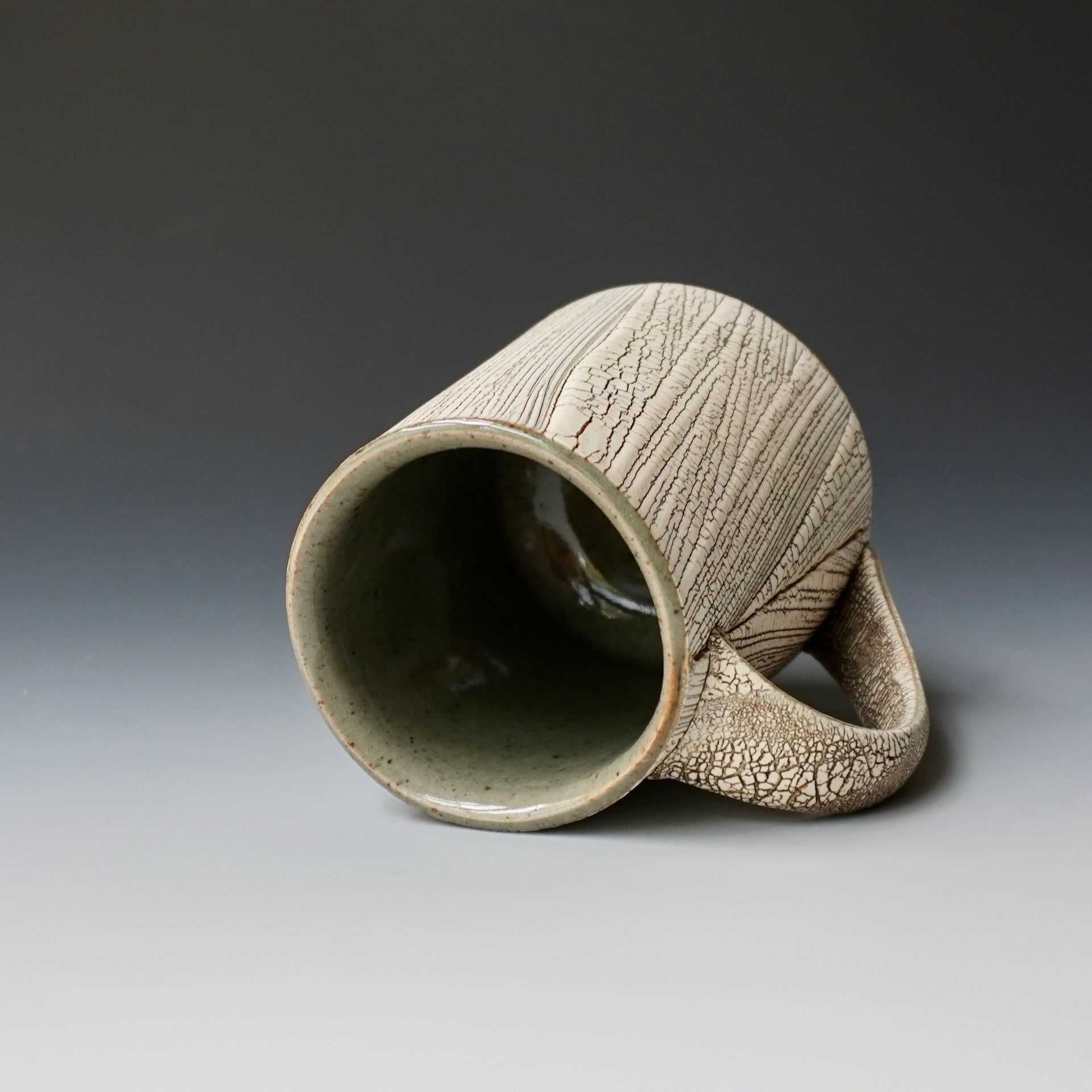 Mug cup - kohiki (white slip), liner glaze: celadon4.75 x 3.75 x 4.5 inchesholds 15 oz to brim, 13oz comfortablyhandle for three fingers