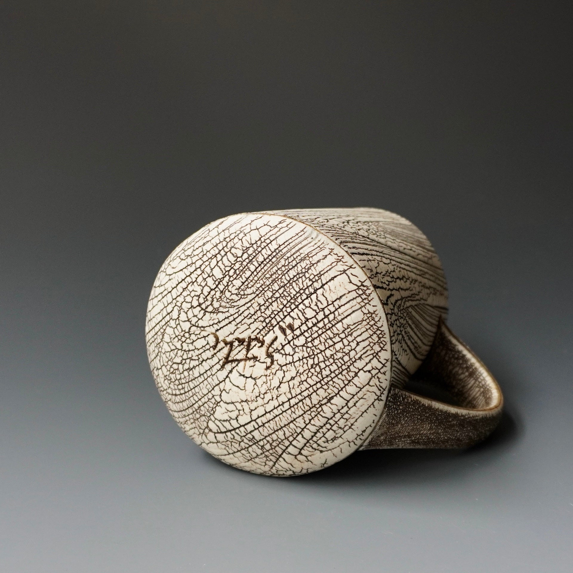 Mug cup - kohiki (white slip), liner glaze: celadon4.75 x 3.75 x 4.5 inchesholds 15 oz to brim, 13oz comfortablyhandle for three fingers