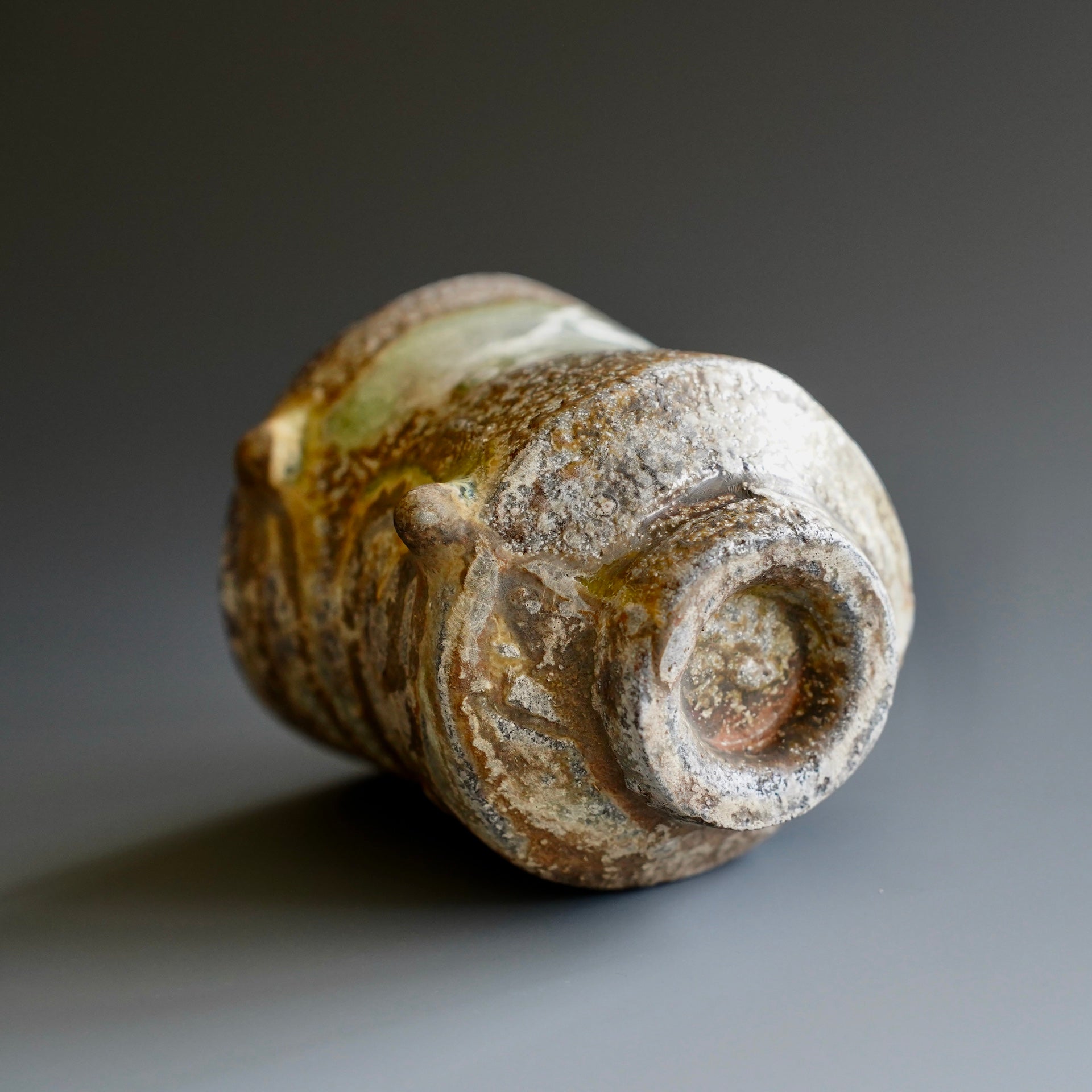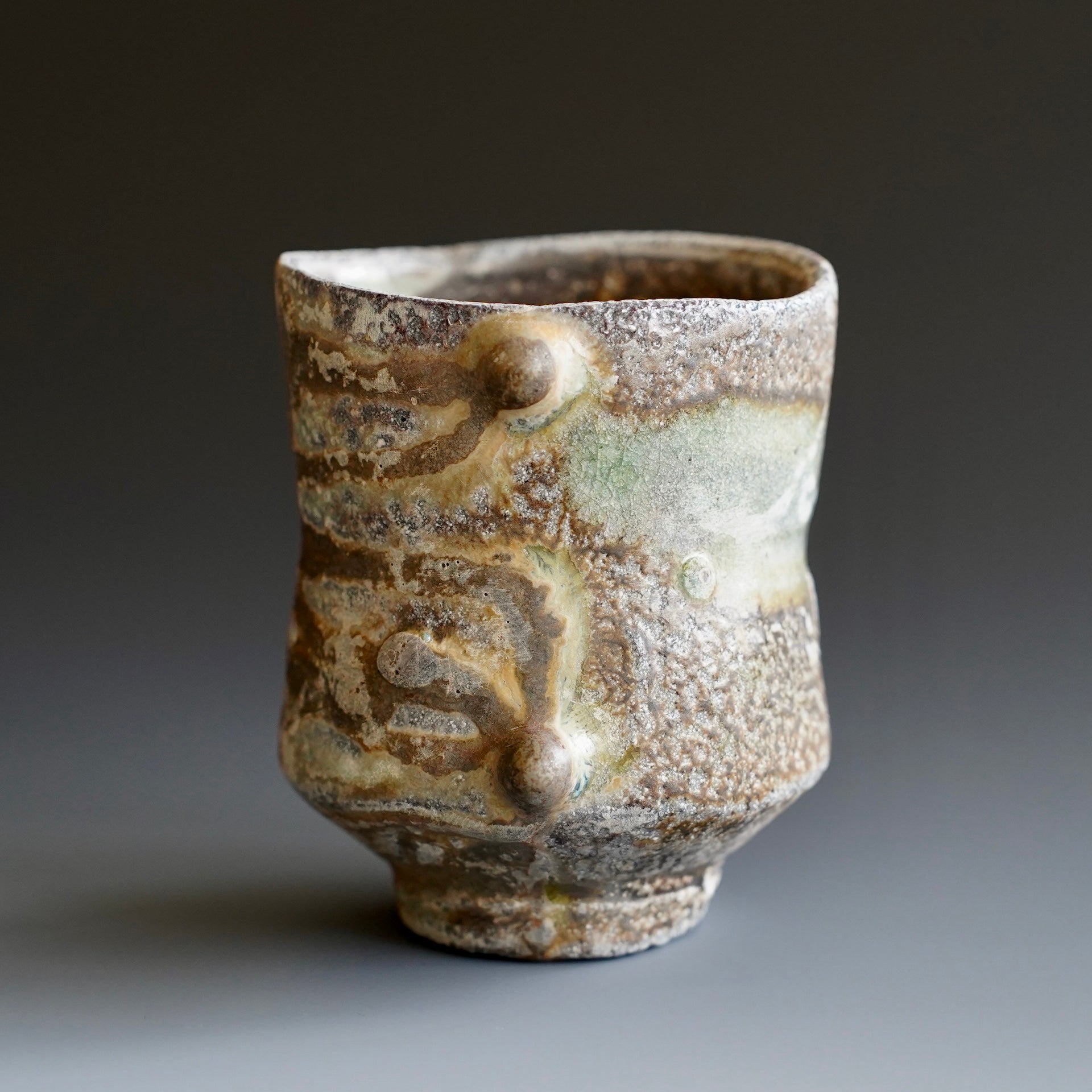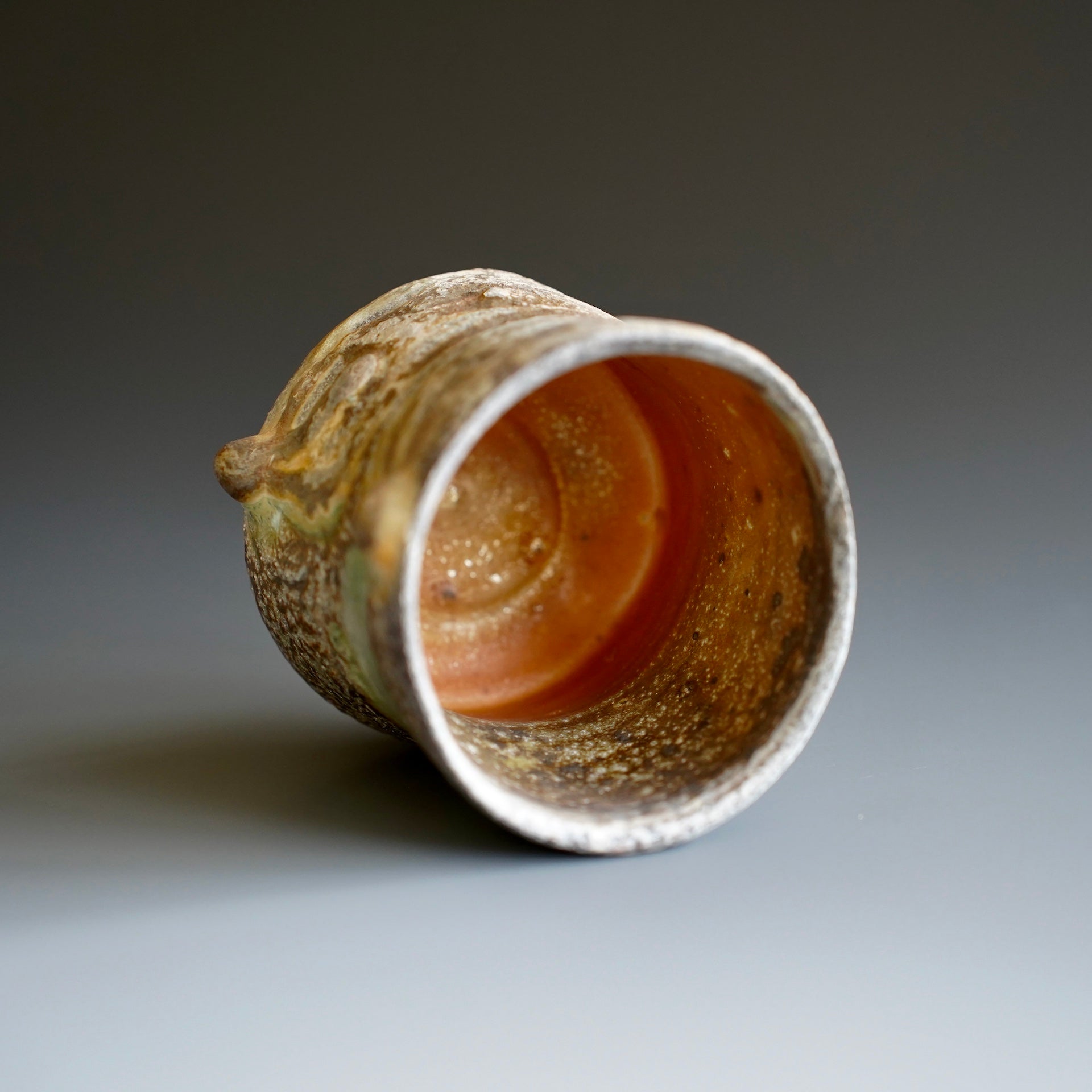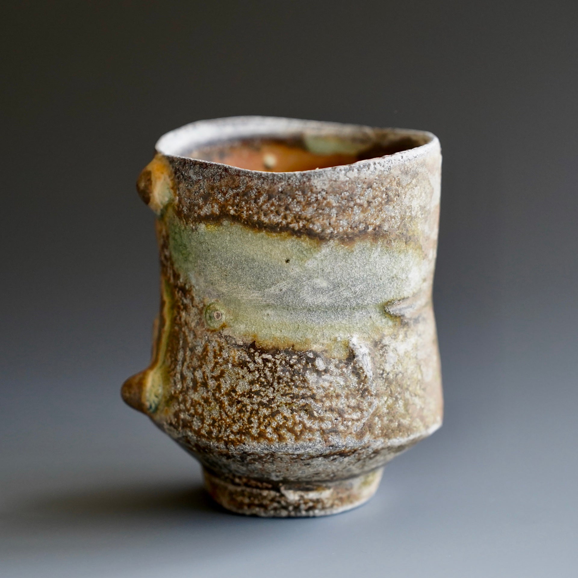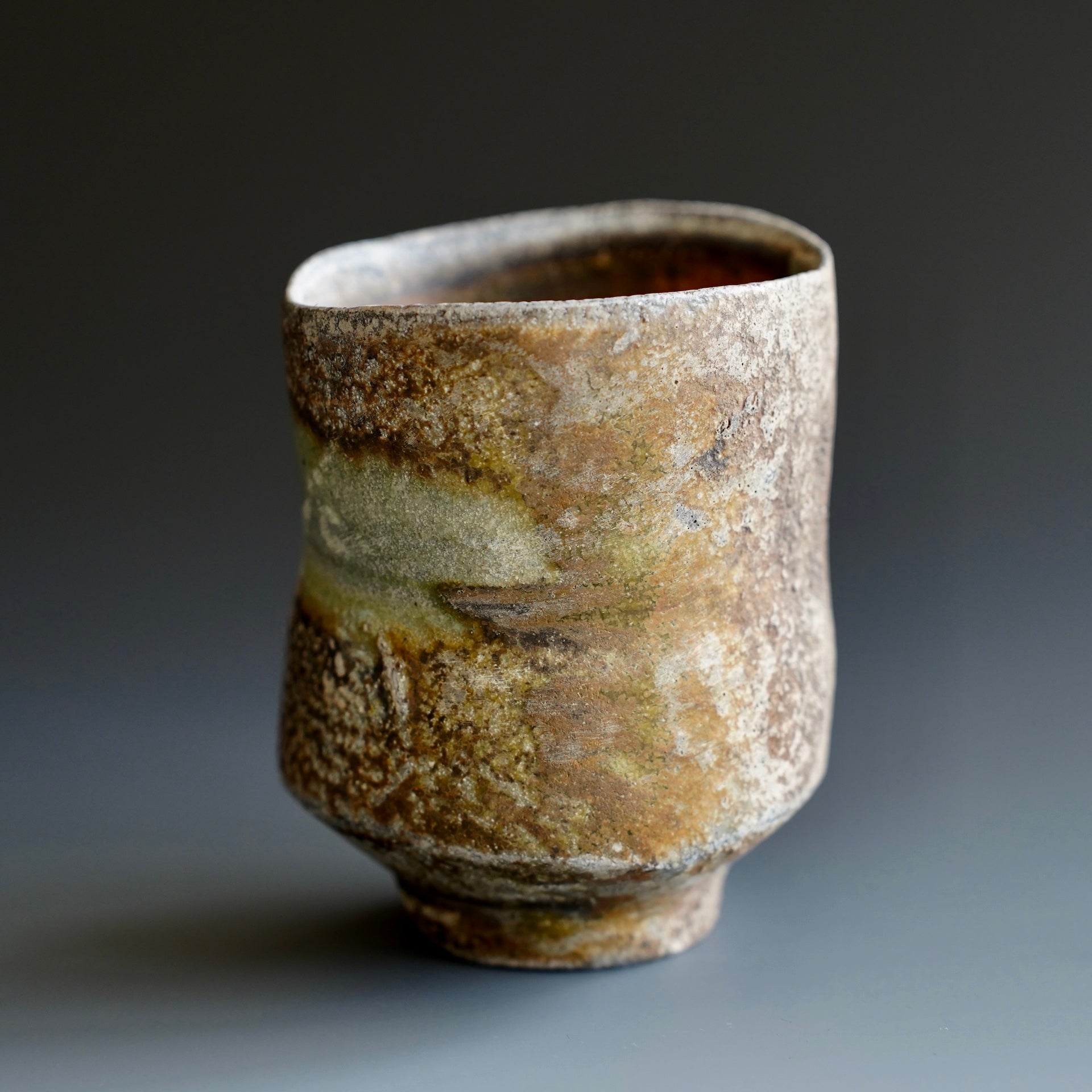 Yunomi- Natural wood ash , WoodfiredNatural wood ash: pottery surface is left unglazed and takes on color and markings during the firing from the melted wood ash